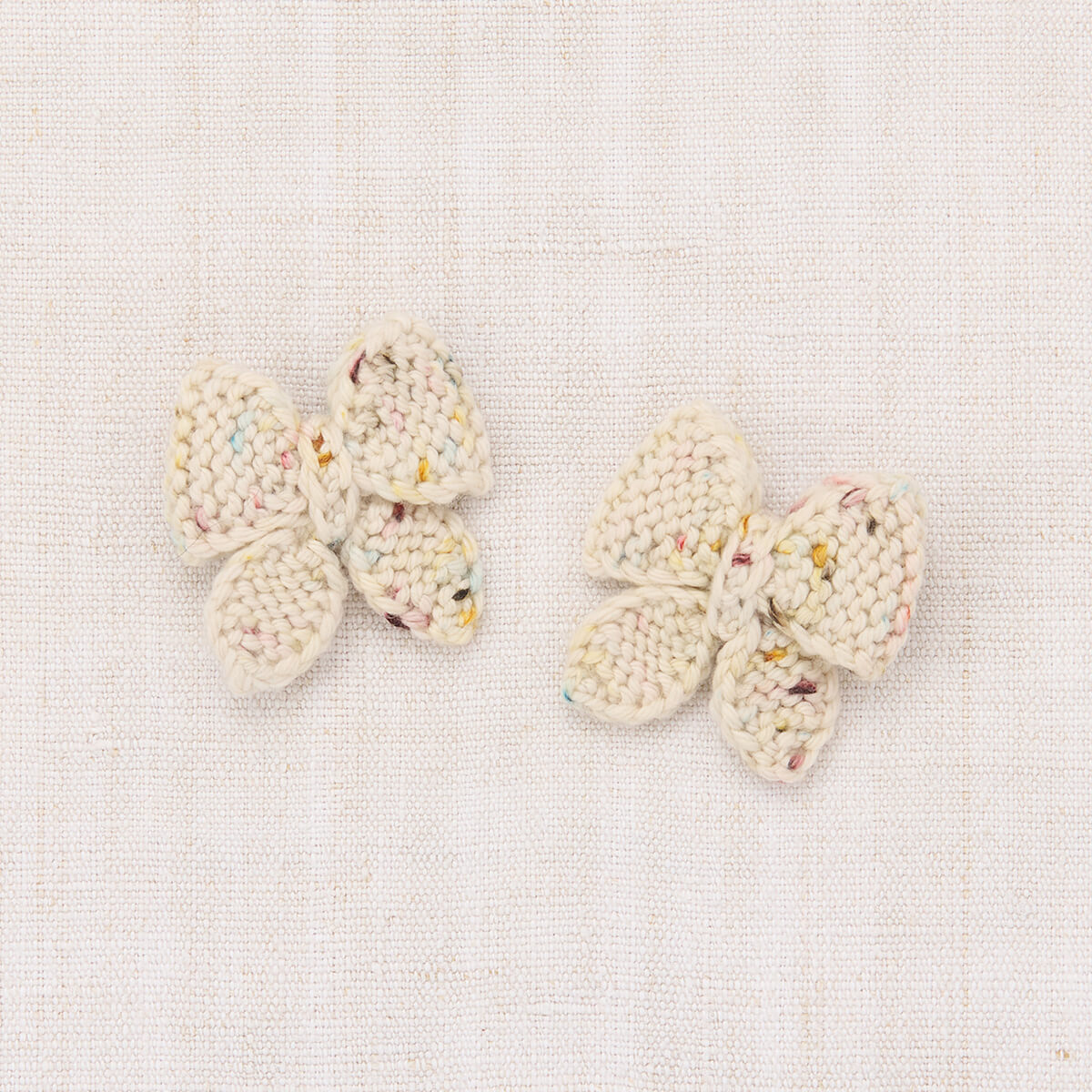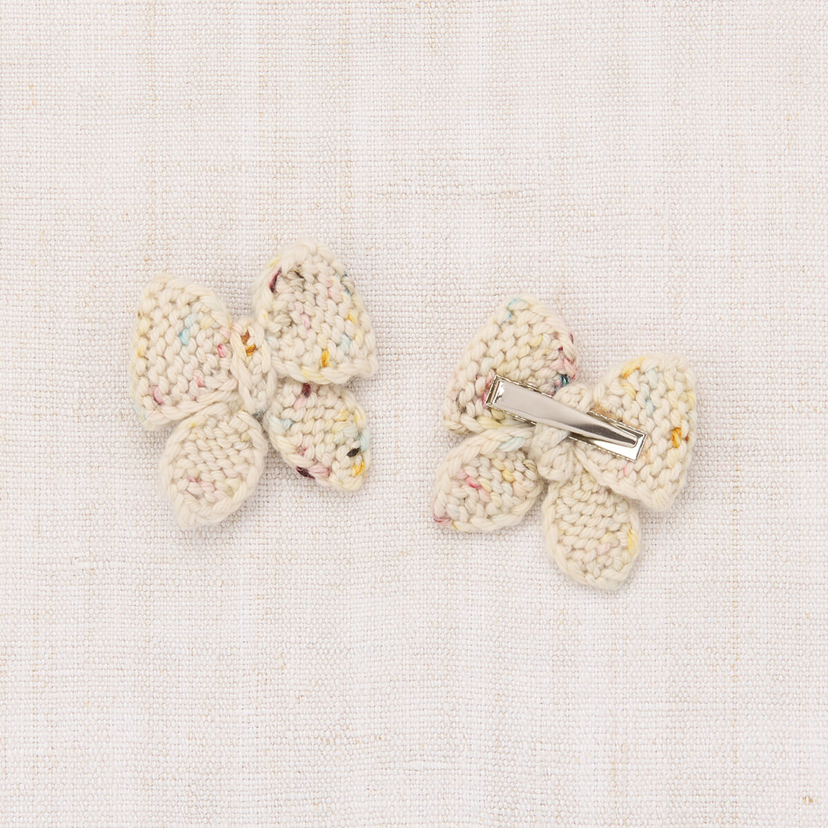 Baby Puff Bow Set by Misha & Puff. A Misha & Puff classic, hand-knit bows on alligator clips. The Baby Puff Bow Set is the smallest hair accessory made for matching your favorite knitwear, adding a pop of colour, or gifting to a friend.