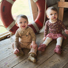 Baby Skating Pond Skirt by Misha & Puff. A hand-knit skirt in heavier-weight Merino wool. Featuring attached bloomers with ribbed cuffs and a ribbed waistband with a popcorn tie drawstring for a secure fit.