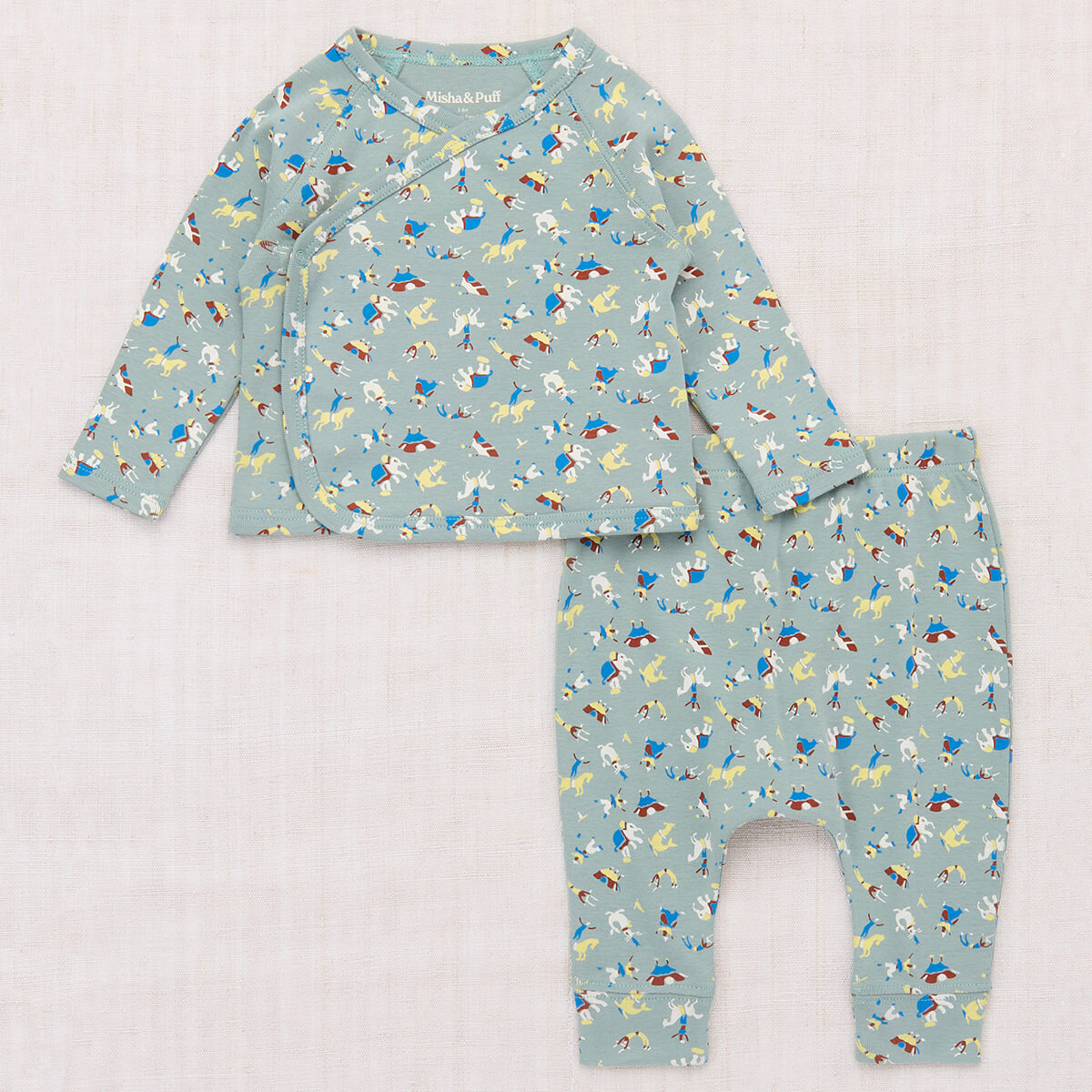 Baby Wrap Set by Misha & Puff. A baby set in soft organic Pima cotton, featuring a long-sleeved wrap top with a front snap closure and easy pull-on bottoms.