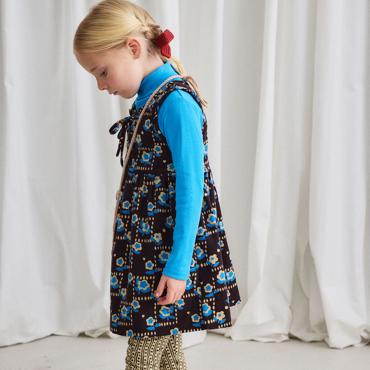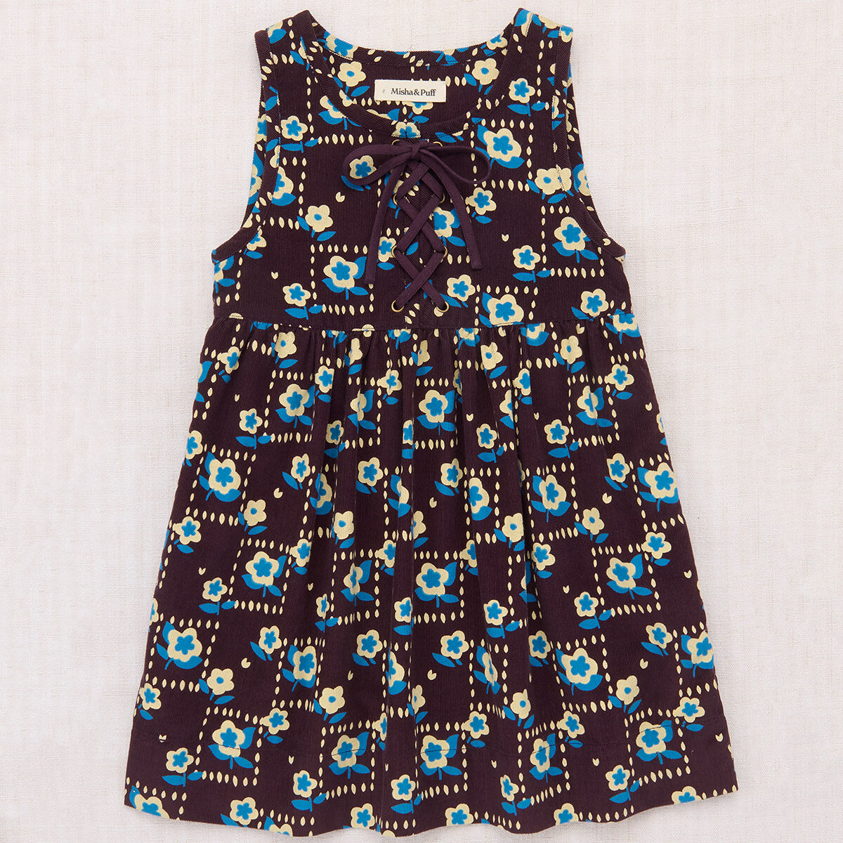 Agatha Dress by Misha & Puff. A sleeveless dress in fine wale cotton corduroy that lends a soft, easy drape. Featuring a slight A-line silhouette and grommeted lace-up tie closure.