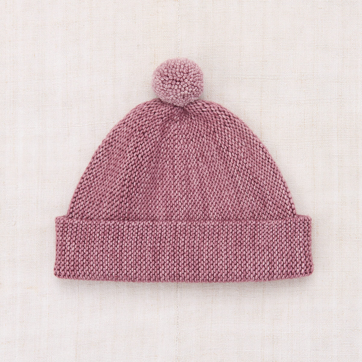 Garter Hat by Misha & Puff. A classic hat in a Merino wool knit, with an adjustable brim and a pom-pom top. The brim comes unrolled — wear it rolled, cuffed, or loose.