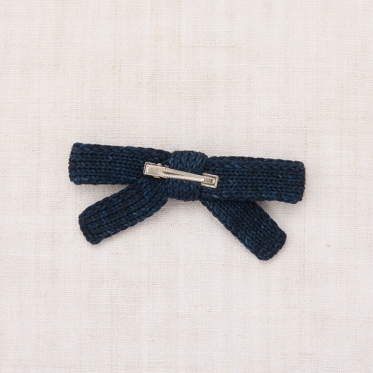 Jumbo Goldie Bow by Misha & Puff. An entirely hand-knit jumbo version of the Goldie Bow on an alligator clip in Pima cotton. Perfect for matching your favorite outfit, adding a pop of colour, or gifting to a friend.
