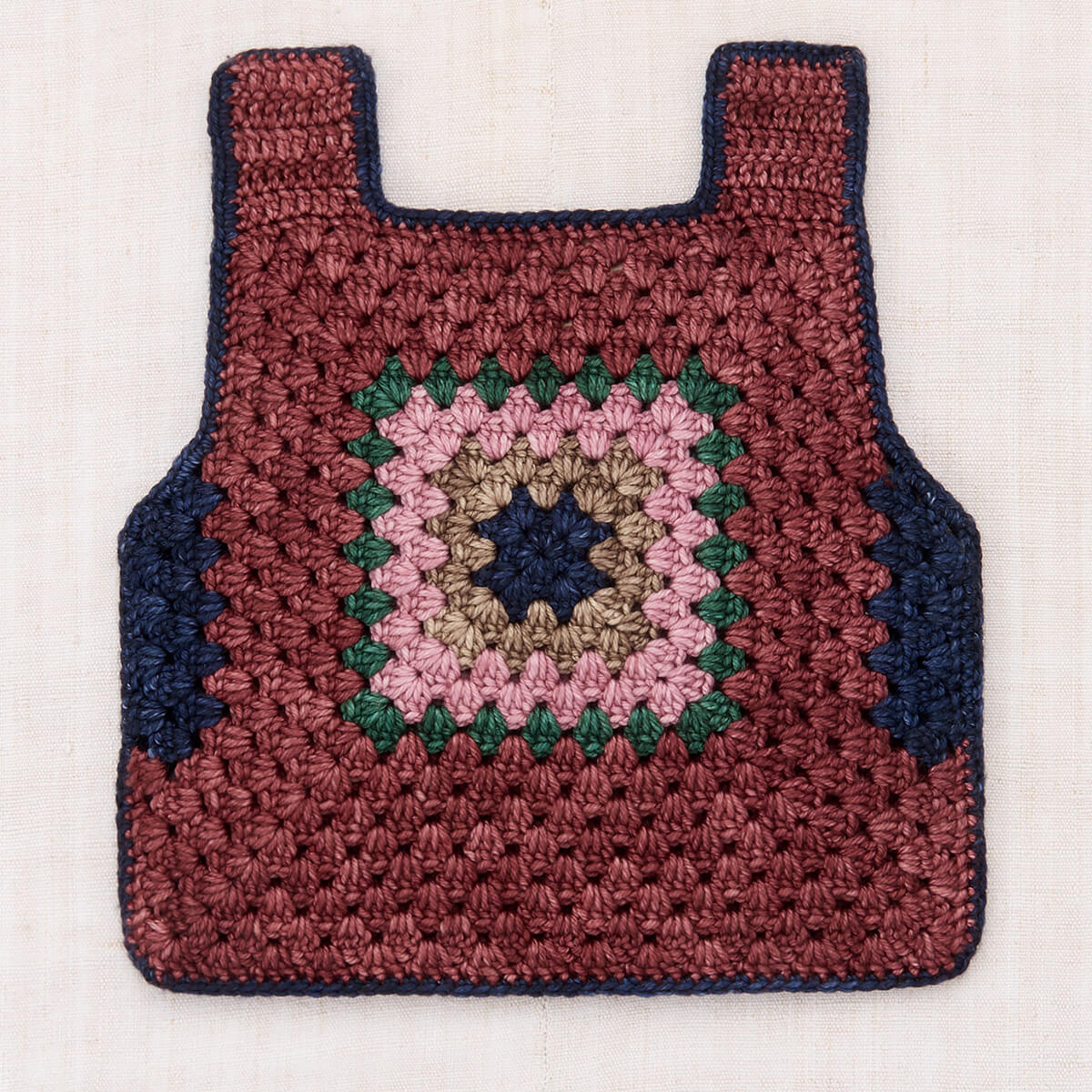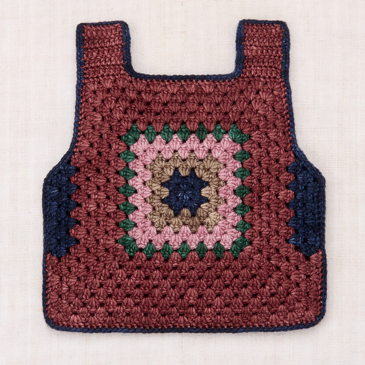Lake House Vest by Misha & Puff. A slightly boxy hand-crocheted tank vest in Merino wool. Featuring a granny square detail on the front and back. A show-stopping piece — perfect for layering.
