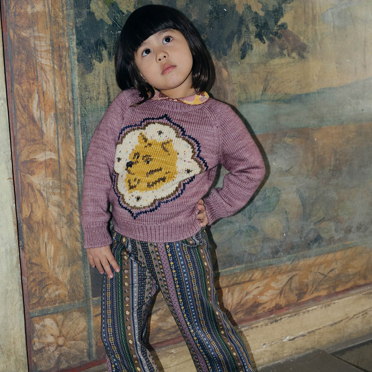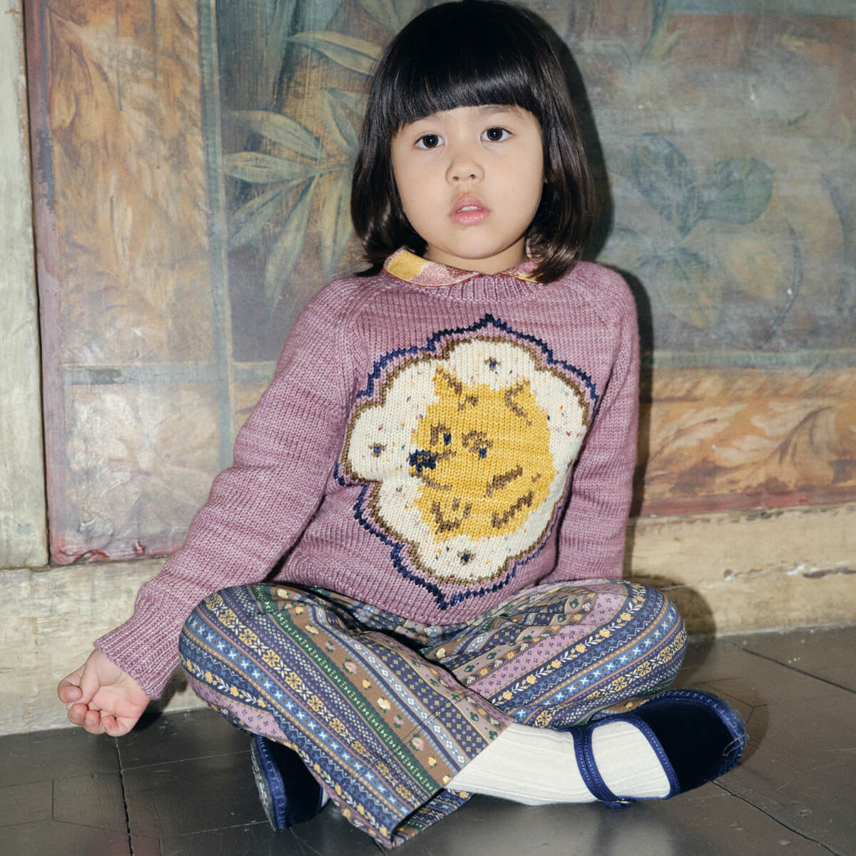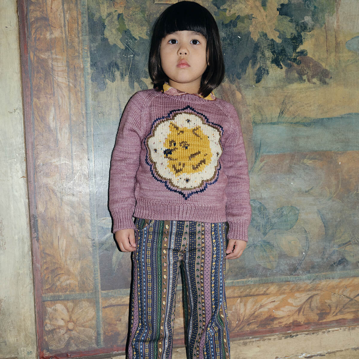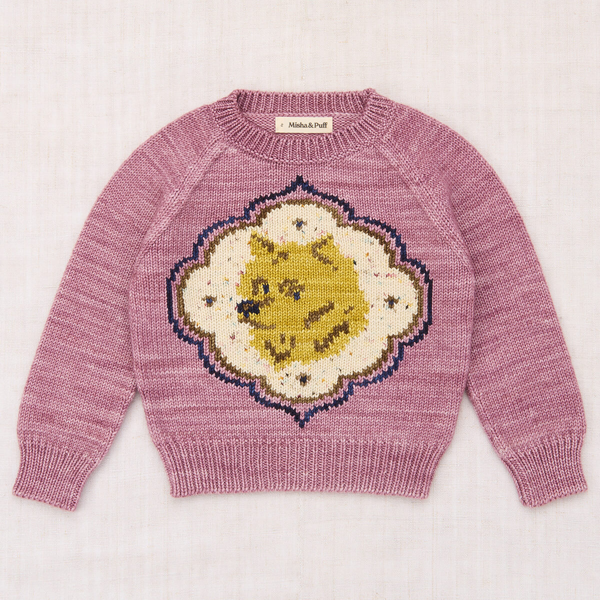 Royal Dog Sweater by Misha & Puff. A classic crewneck jumper in Merino wool, featuring a slightly roomy shape, ribbed cuffs and hem, and a special dog portrait intarsia on the front.