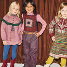 Ruffle Cardigan by Misha & Puff. A three-button cardigan featuring a self-rolled mock neck, open A-line silhouette, hand-knit yoke, and a ruffle that extends the full length of the top. With eyelet and popcorn stitch detailing, bracelet-length sleeves, garter stitch cuffs and hem, and horn button closure.