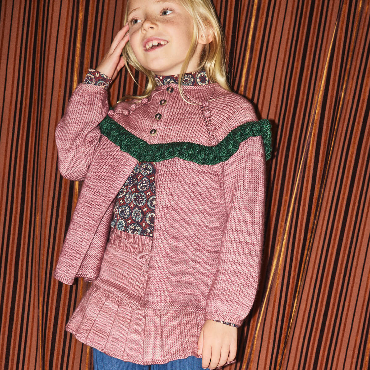Skating Pond Skirt by Misha & Puff. Misha & Puff's signature pleated skirt in Merino Wool knit. A hand-knit skirt featuring attached bloomers with ribbed cuffs and a ribbed waistband with a popcorn-tie drawstring for a secure fit.