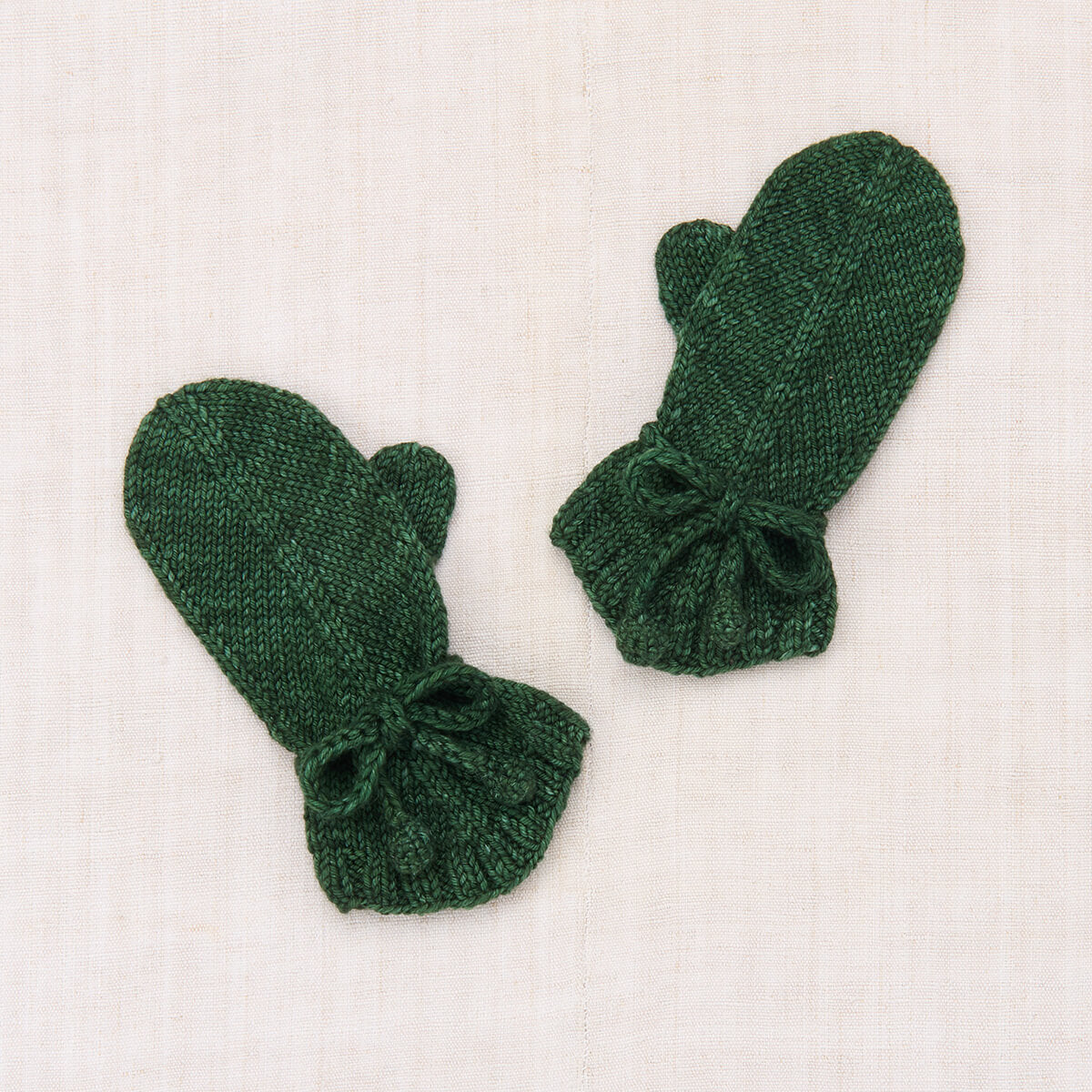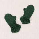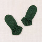 Snowshoe Hare Mittens by Misha & Puff. A hand-knit pair of mittens in Merino wool, featuring a vintage-inspired pointed shape, ribbed trim, and popcorn ties at the wrist to keep out the cold.