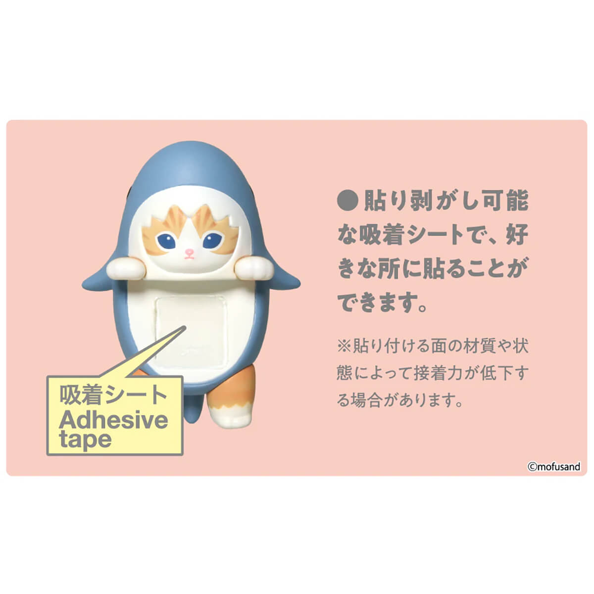 Mofusand Hippers mini figure by Sonny Angel. With Hippers Mofusand, you can enjoy the Mofusand characters’ adorable faces peeking over the front of your laptop, desk, or phone while their plump bottoms and cute tails stick out from behind. These wonderful, slightly surreal cats will add a touch of colour to your everyday life. You can attach Mofusand Hippers to any flat surface with the supplied adhesive tape. You can remove and reattach the adhesive. Adhesive strength may decrease depending on the material and condition of the surfaces to which it is attached. If the suction power becomes weak, it may be restored by moistening the suction surface with water.