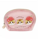 Mofusand Mogitatenyan Embroidered Cosmetics Pouch in Pink by Marushin Japan. This sweet embroidered cosmetics pouch is the essential accessory for carrying your beauty products in style and comfort. Features the popular Mogitatenyan Mofusand cherry cats embroidered onto a mesh fabric with a gold tone paw zipper pull. Mesh front with a PU faux leather backing.