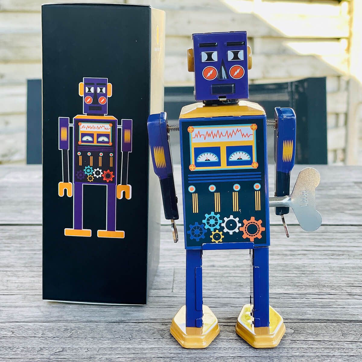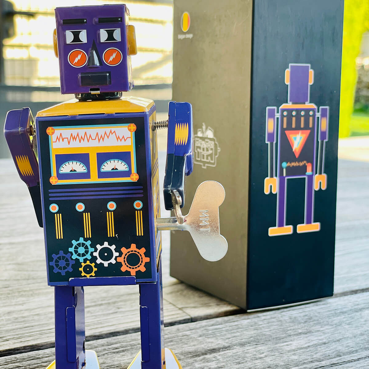 Power Bot limited edition wind up tin robot by Mr & Mrs Tin. Wind them up and watch them go!