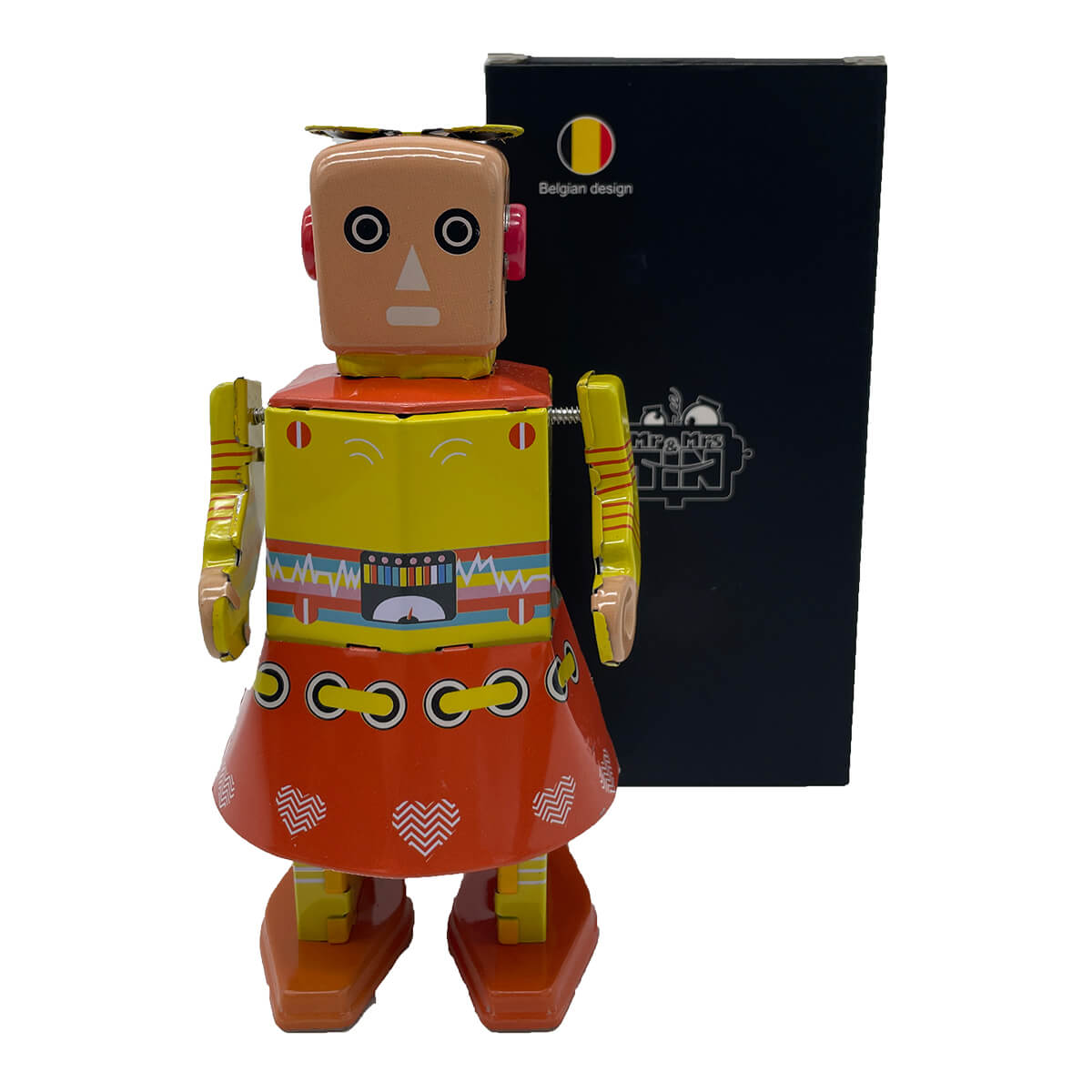 Mr & Mrs Tin was created by PlanToys sales director and vintage toy enthusiast Alain De Rauw. His goal is to make vintage tin toys relevant again and recreate the love for these beautiful mechanical toys that they had in the 50s and 60s. To show people how they are made, to create something unique, and tell a story that teaches children about passion and handcraft skills. Mr & Mrs Tin products are made for people who appreciate handmade toys, especially the ones made with love and passion. People who would like to own and collect them and happy to pass them on to their children and even grandchildren. All Mr & Mrs. Tin toys are robustly tested against worldwide major toy regulations and safe for all children over three including grown ups too!
