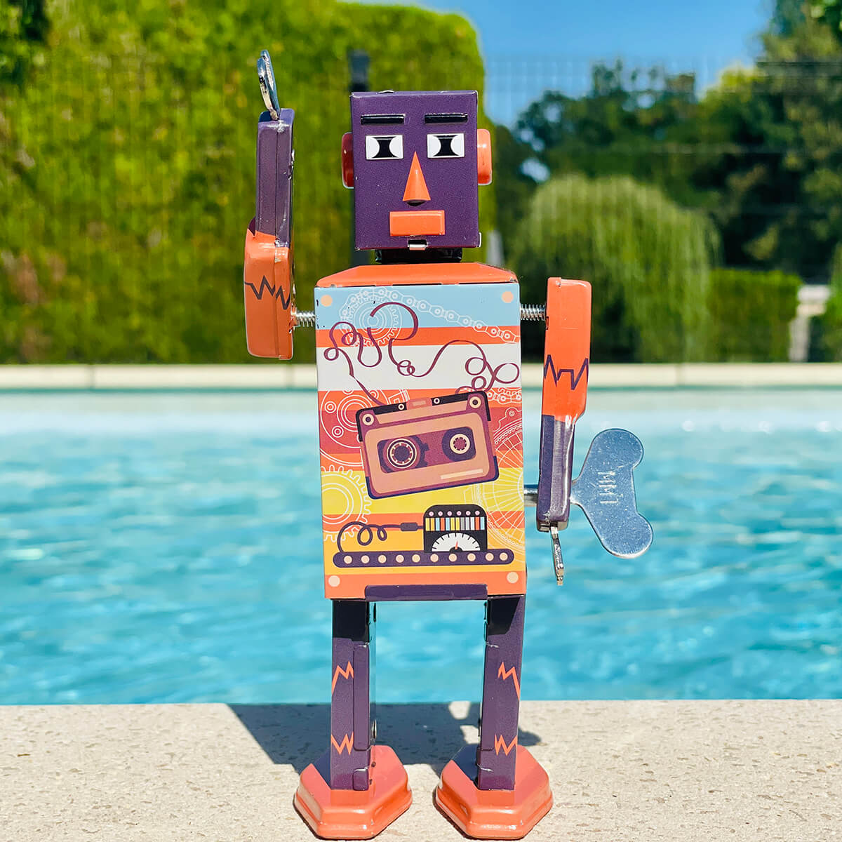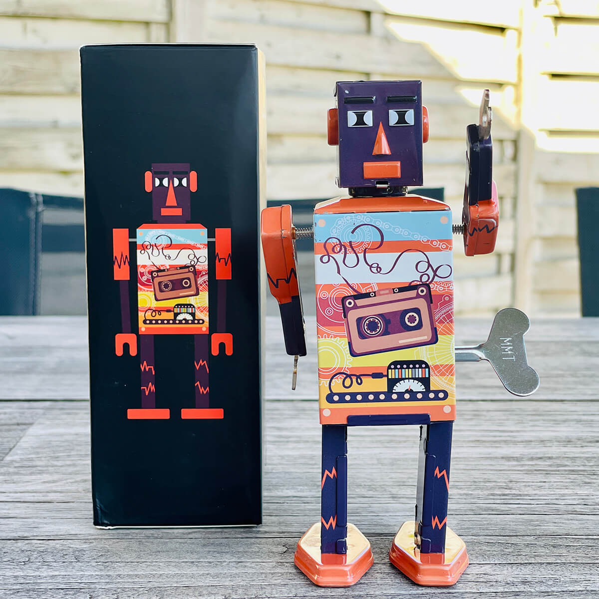 Tape Bot limited edition wind up tin robot by Mr & Mrs Tin. Wind them up and watch them go!