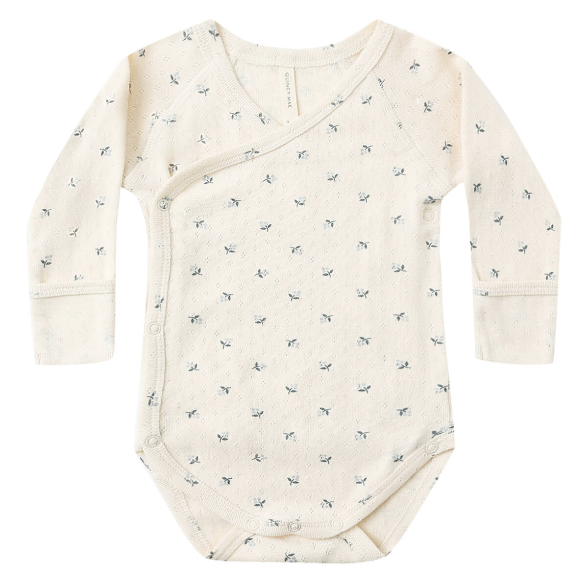 Side Snap Bodysuit by Quincy Mae. Crafted in sweet pointelle knit, this side-snap bodysuit wraps softly around baby with inside and outer seam snaps for effortless dressing—no overhead changes needed. Thoughtful details include fold-over mitts to keep little hands warm and bottom snaps for easy diaper changes.