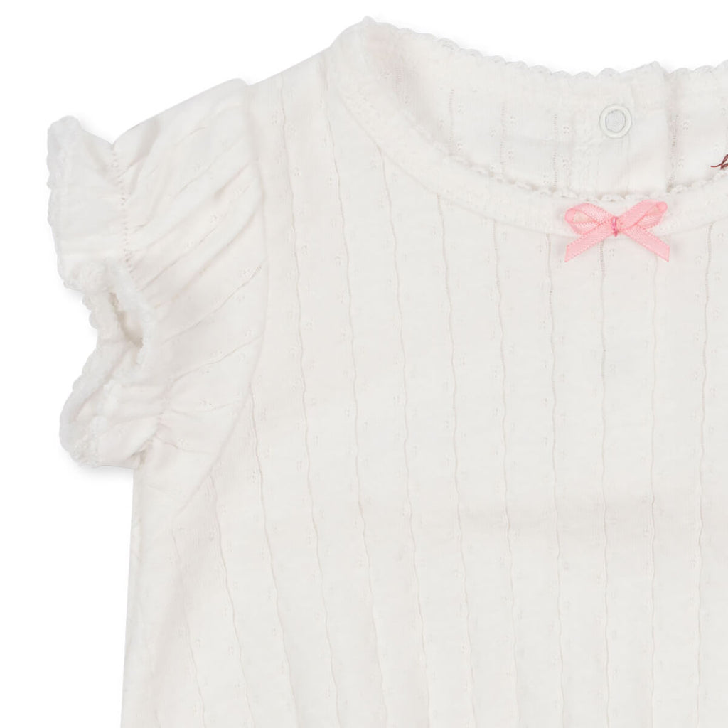 Mallou Romper by Konges Sløjd. Soft and light organic cotton romper with all-over pointelle pattern.
