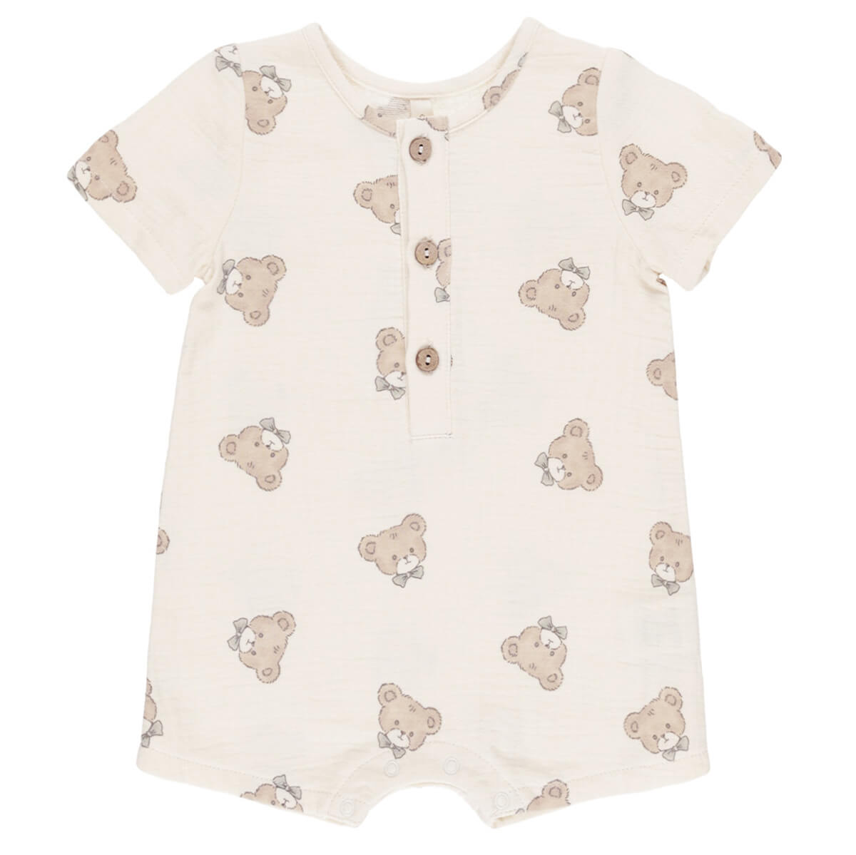Short Sleeved Woven Romper in Teddy by Quincy Mae