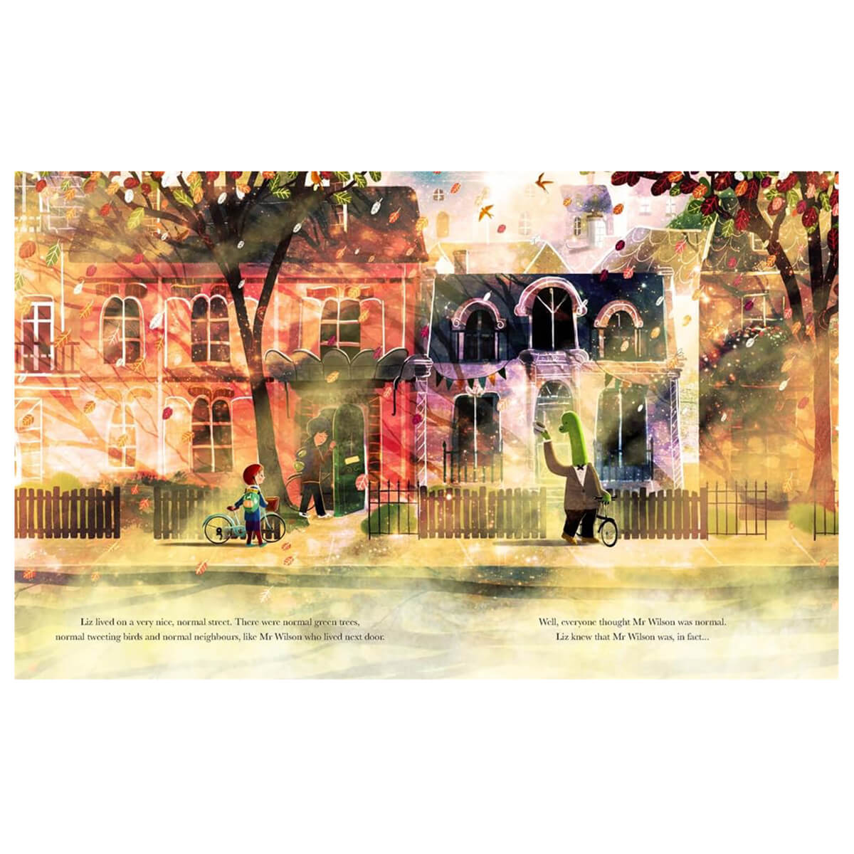 The Dinosaur Next Door by David Litchfield. Liz is sure that her next-door neighbour has a secret. He's got a very long neck, clumpy feet and a strange taste for green leaves... he's a dinosaur! Unfortunately, she's not the only one who's noticed. When Mr Wilson is taken away by scientists, Liz realises that everyone is free to live the life they wish and she must help save her friend.
