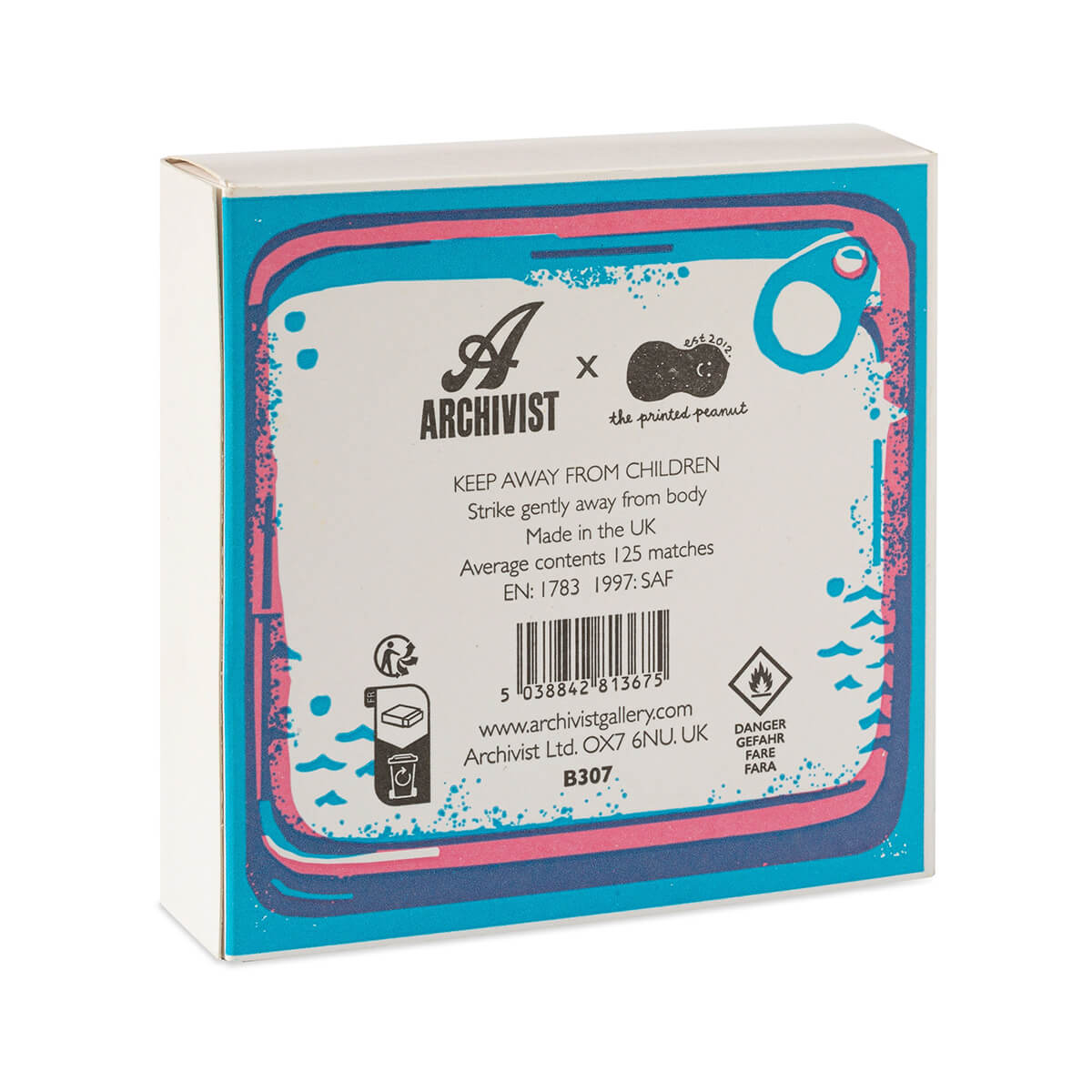 Please note: These matches are made from natural products and may contain inherent structural flaws. Whilst Archivist Gallery take time to test the matches, they cannot reasonably test every single one, so strike the match gently (easy does it!) and away from you, over non-combustible surfaces.