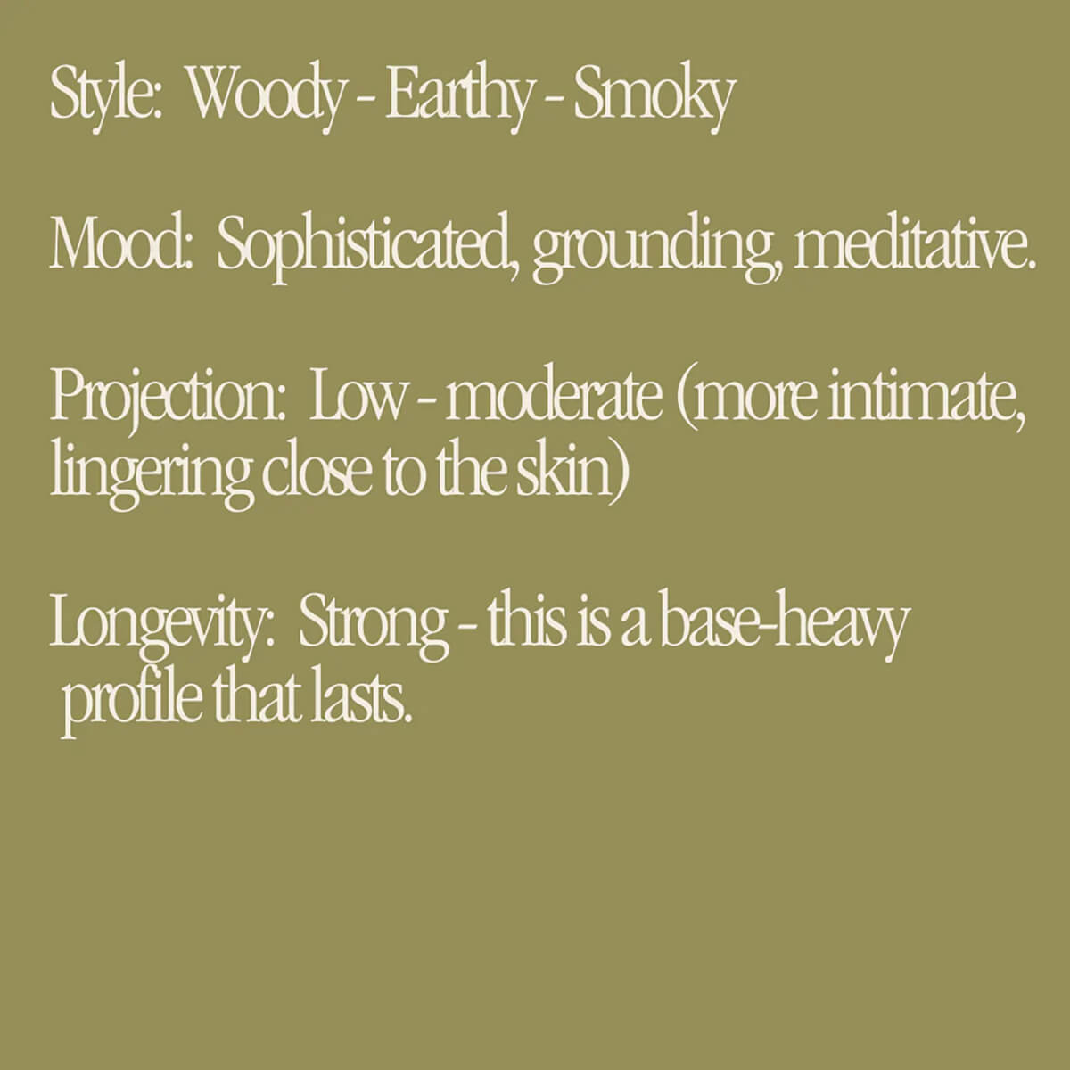 Key Notes: Cedarwood, Vetiver, Patchouli.