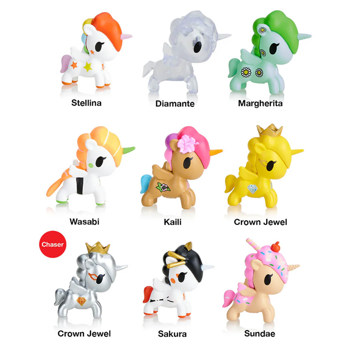 List price is for one character only. Each blind box contains one character sealed in a silver foil bag. Characters include: Stellina, Diamante, Kaili, Wasabi, Crown Jewel (gold), Margherita, Sakura, Sundae, and Crown Jewel (silver – chaser!)
