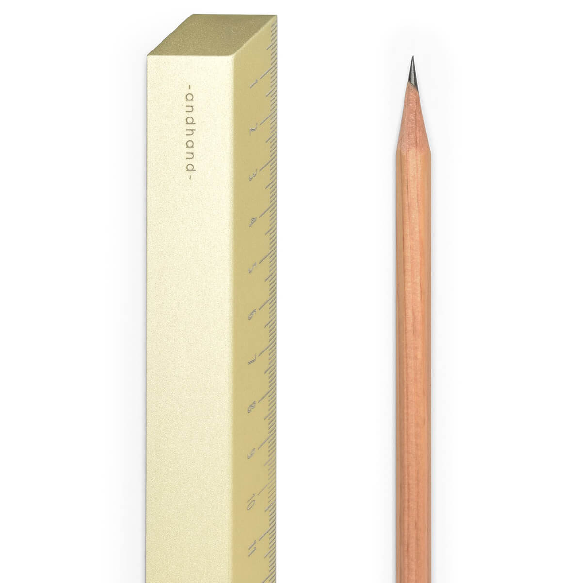 Illusion Ruler by Andhand. The illusion ruler is a great precision tool for all your linework needs. Its angled profile allows for extremely accurate mark making and measuring in both metric and imperial whilst also making it very easy to pick up from a flat surface. Don’t be fooled by the illusion though, the rulers unique rhomboid form creates a striking illusion that makes it appear to be as equally deep as it is wide. In addition the ruler is a little heavier than most which is handy when you need an extra paperweight.