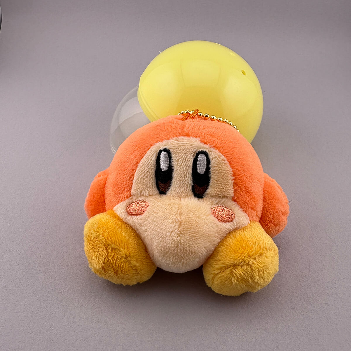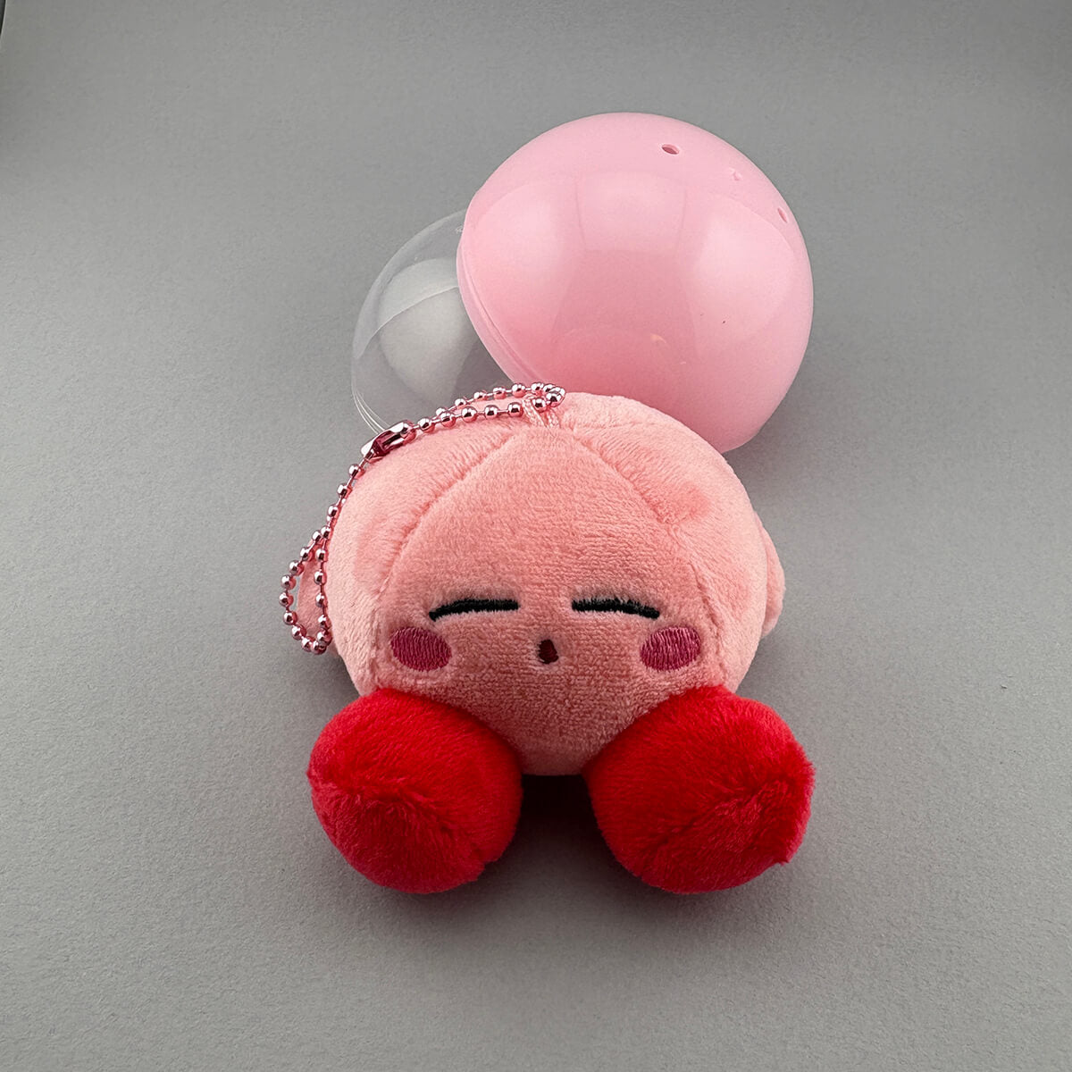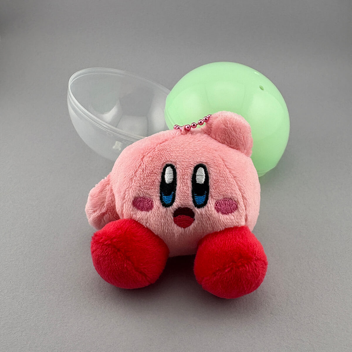 Kirby Sitting Plush Keychain Vol. 2 Gachapon Capsule Collectible by Kitan Club. Highly collectible and authentic Japanese gachapon capsule containing one of four different plush Kirby keychains! Kirby has embroidered features and is on a coloured metallic ball chain.
