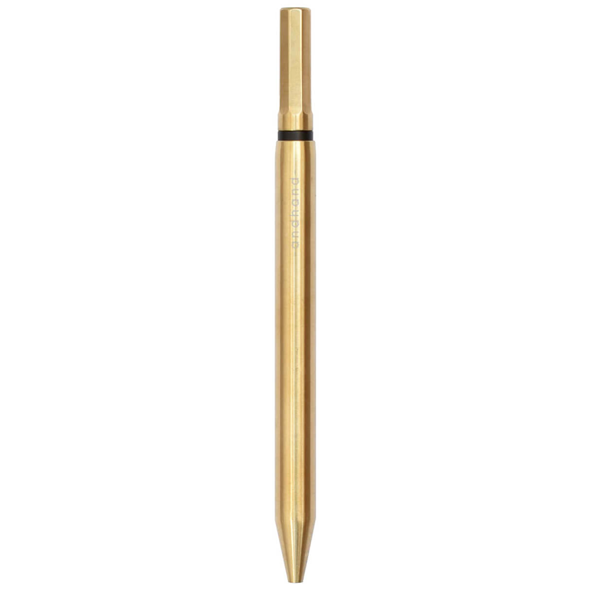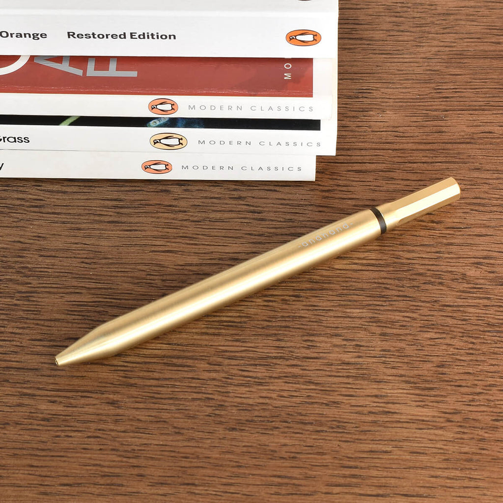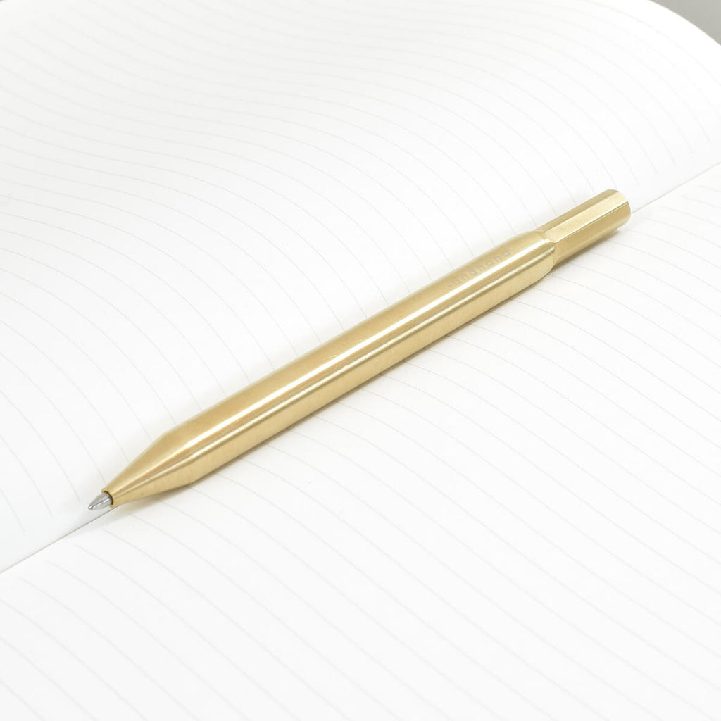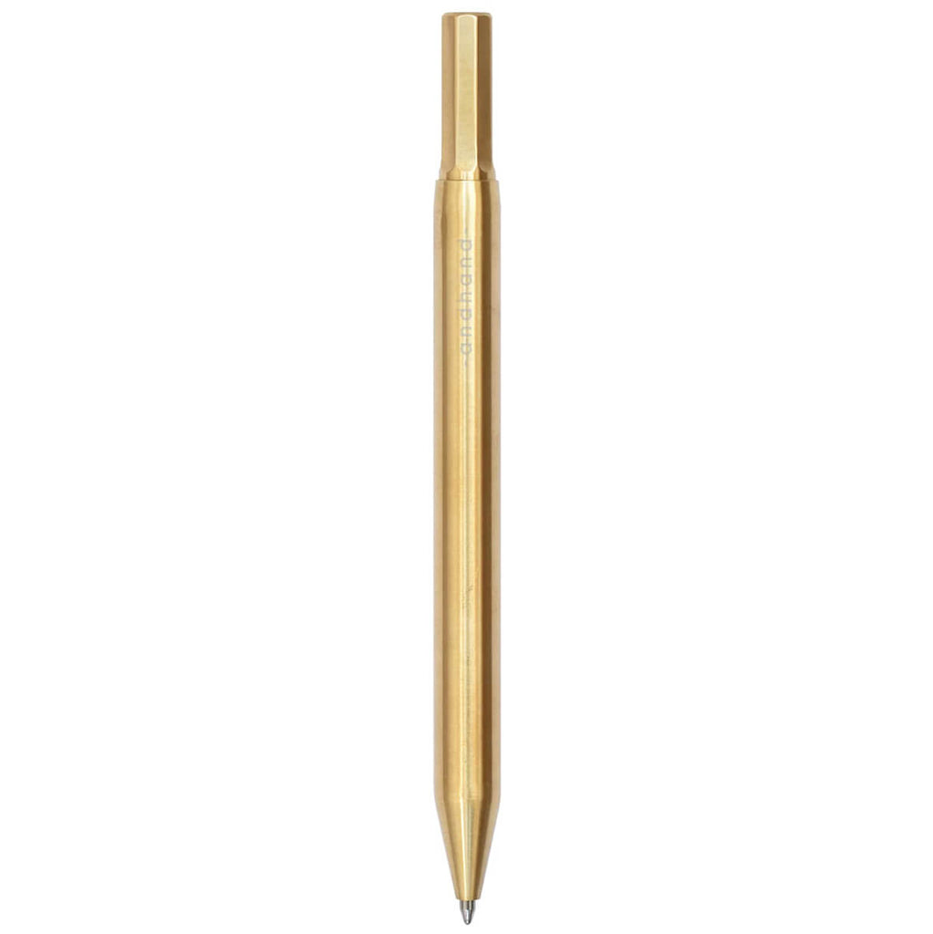 Method Pen in Brass by Andhand. The brass series method pen is a timeless piece with modern appeal. The all metal construction of this retractable pen has been crafted with precision and features an elegant twist movement revealing a contrast of black in its retracted position.