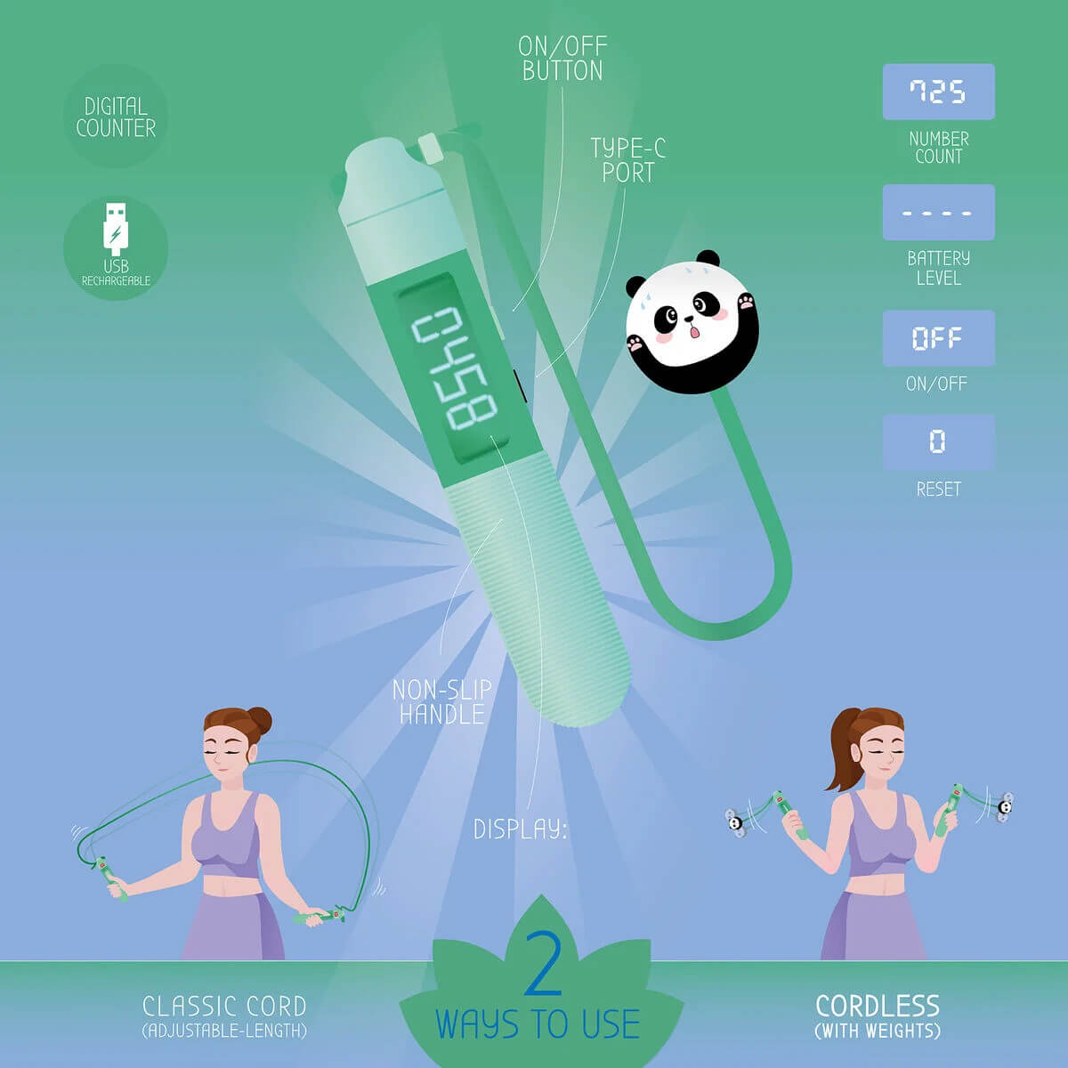 Panda cordless skipping rope by Legami. Whenever you feel too lazy to make it to the gym, just skip it! Literally: with the Cordless Skipping Rope - Jump Around, you can work out at home or at the gym, while the digital counter keeps track of your skips. And because it’s cordless, you can skip the hassle of getting it tangled with your hair, clothes, or the objects around you.