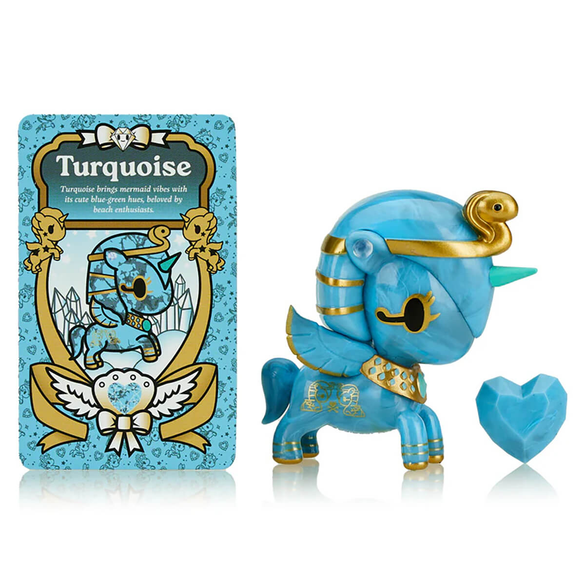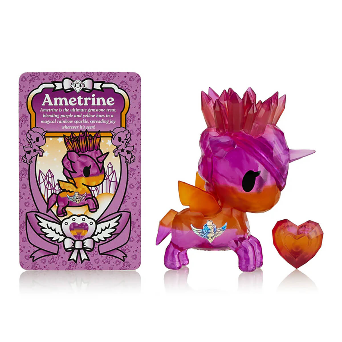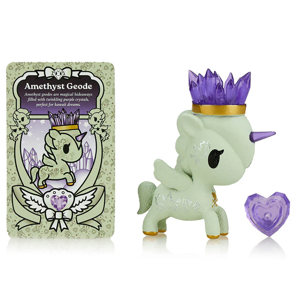 List price is for one character only. Each blind box contains one character sealed in a silver foil bag. Each Precious Unicorno comes with a heart crystal, collector card and sticker. Characters include: Rose Quartz, Ametrine, Angelite, Amethyst Geode (opens to show Geode texture inside!), Topaz, Selenite, Turquoise, Carnelian and Malachite (chaser!)