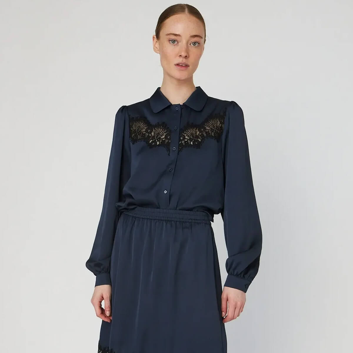 Delicate Lace Shirt in Ultra Navy by Stella Nova