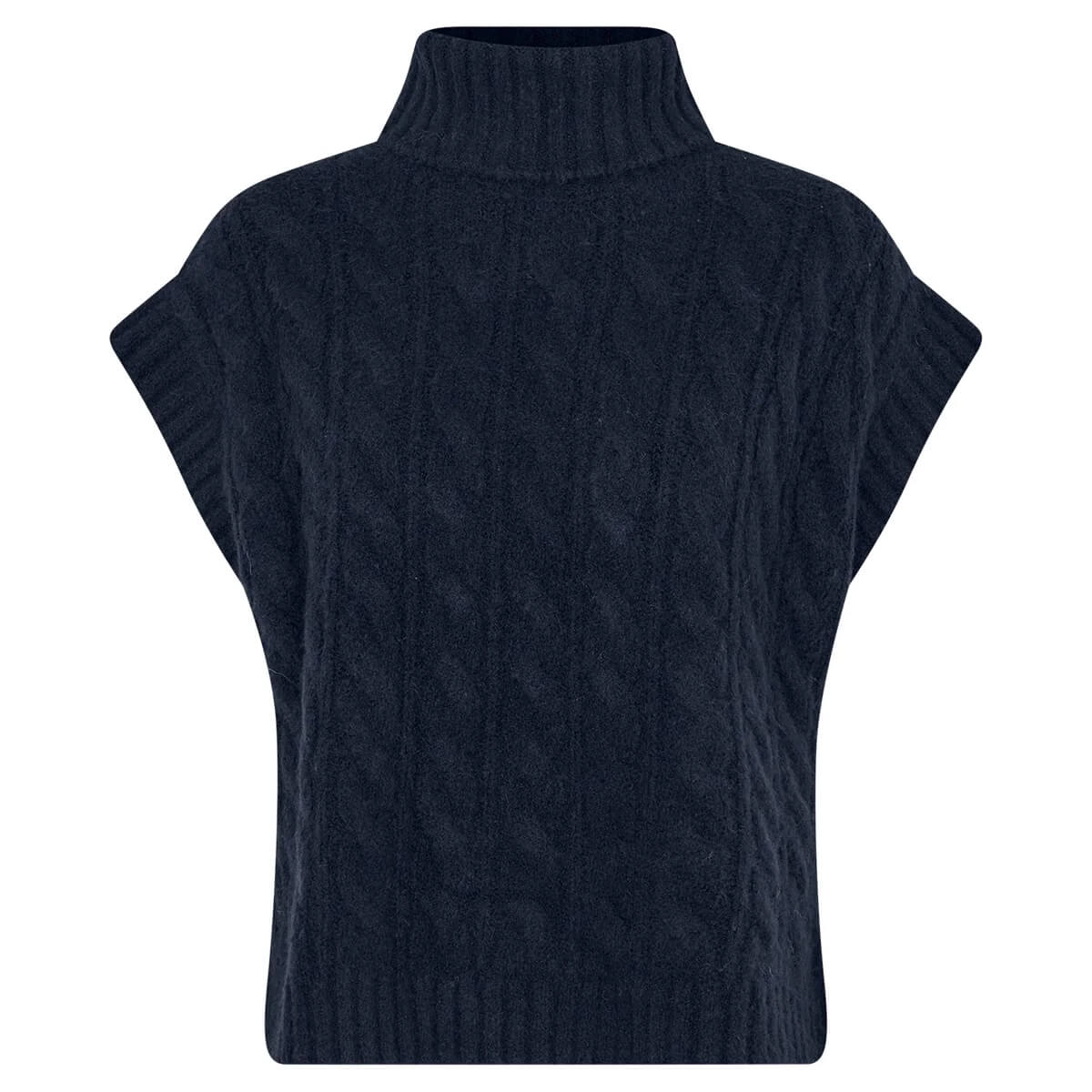 Fresno Knit Vest by Lollys Laundry. The Fresno vest is a soft knit with a classic cable pattern and a high neck. It features a relaxed fit with ribbed edges at the hem and armholes. The perfect layering piece for autumn looks.