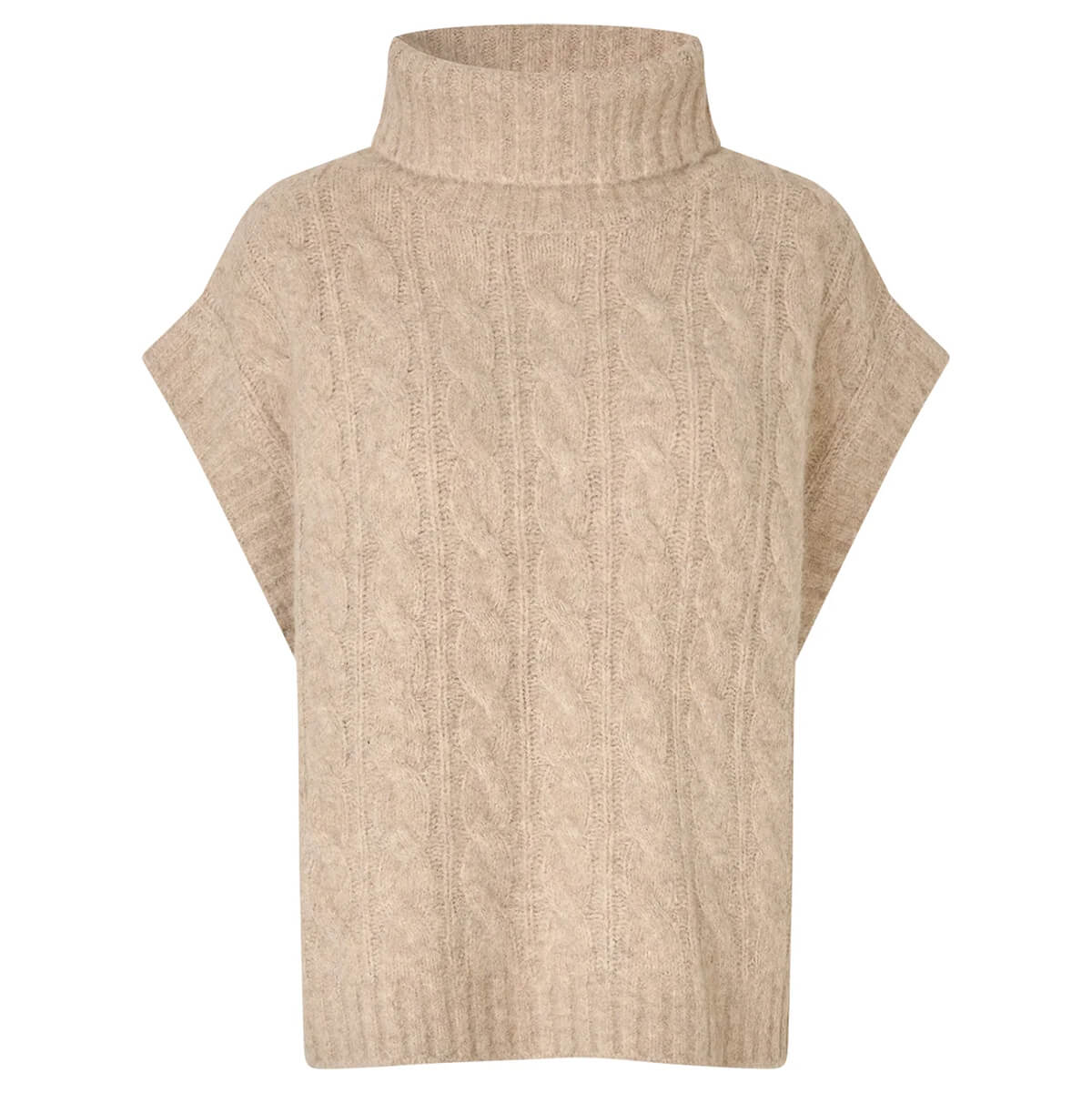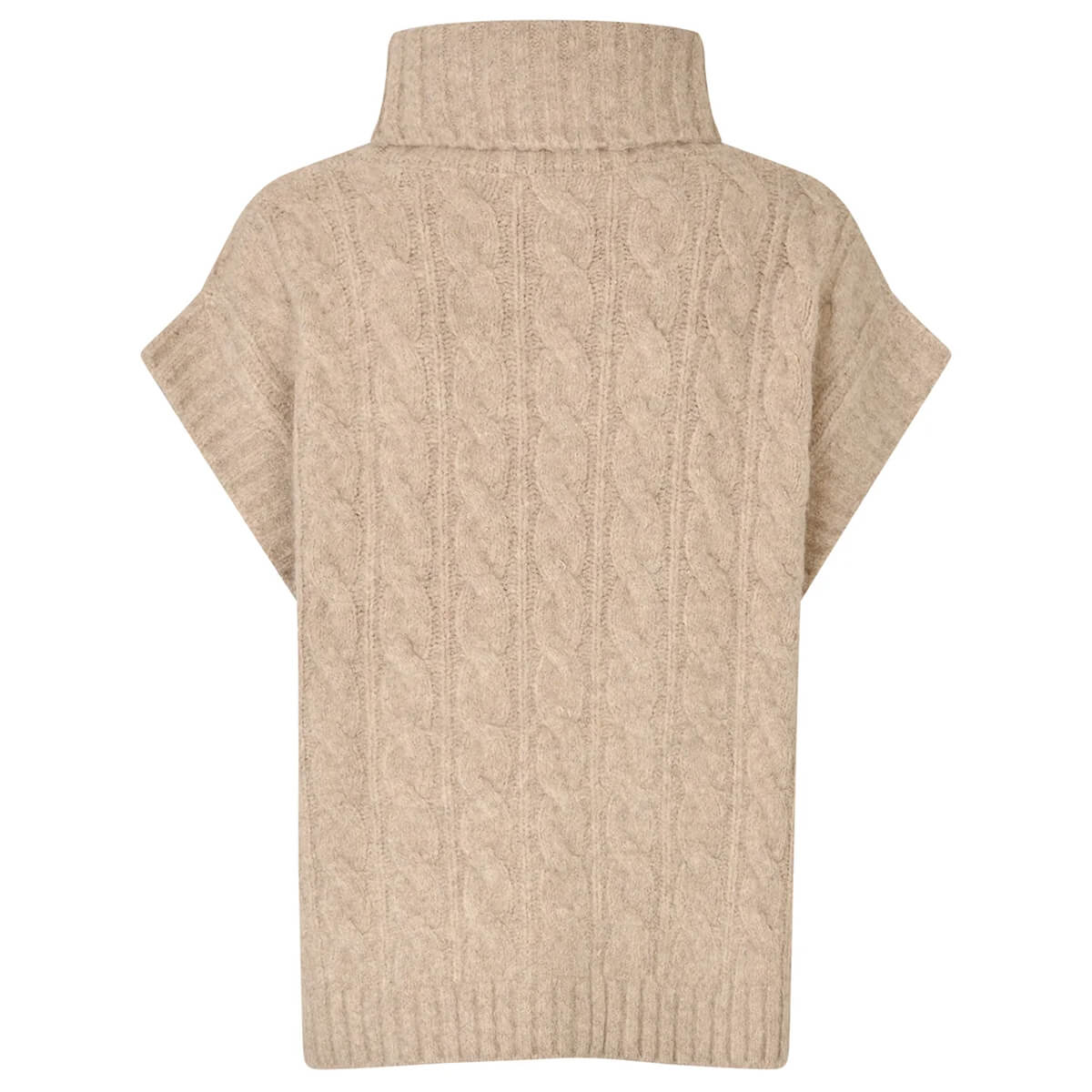 Fresno Knit Vest by Lollys Laundry. The Fresno vest is a soft knit with a classic cable pattern and a high neck. It features a relaxed fit with ribbed edges at the hem and armholes. The perfect layering piece for autumn looks.