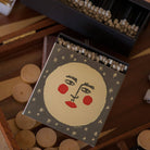 Boxed Matches by Archivist Gallery. Archivist Gallery's signature square matchbox featuring a moon sitting amongst the stars with an illustrated face with rosy red lips and cheeks. Designed by Tabby Booth. Striking in every sense, these matchboxes are filled with 125 matchsticks ready to spark a little joy. Designed to add character to coffee tables, mantelpieces, and gift drawers, each box is a blend of function and flair.