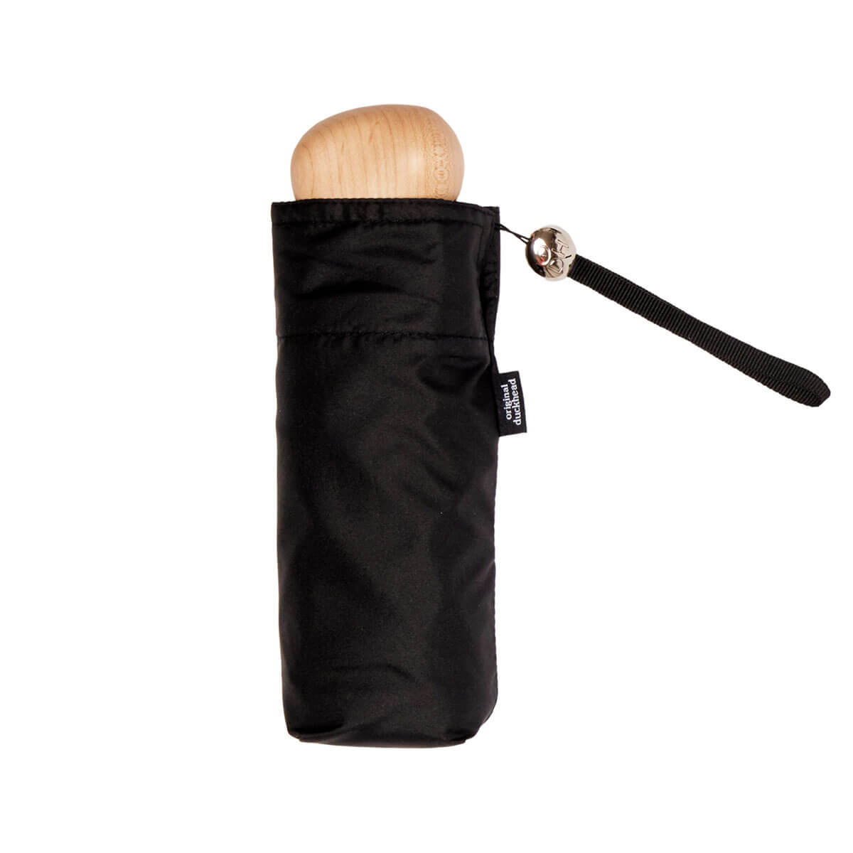 Black Mini Pocket Umbrella by Original Duckhead. Meet The Mini – Original Duckhead’s most compact umbrella yet, a fashion-forward everyday essential. Designed in London and handmade with care, The Mini combines style, sustainability, and portability in one. With its smooth pebble-shaped maple wood handle and sleek silver accents, it’s as much a fashion accessory as it is a practical umbrella. Compact enough to slip into a handbag, clutch, pocket, or backpack. The Mini is perfect for city living, commuting, or travel – always ready when the weather turns.