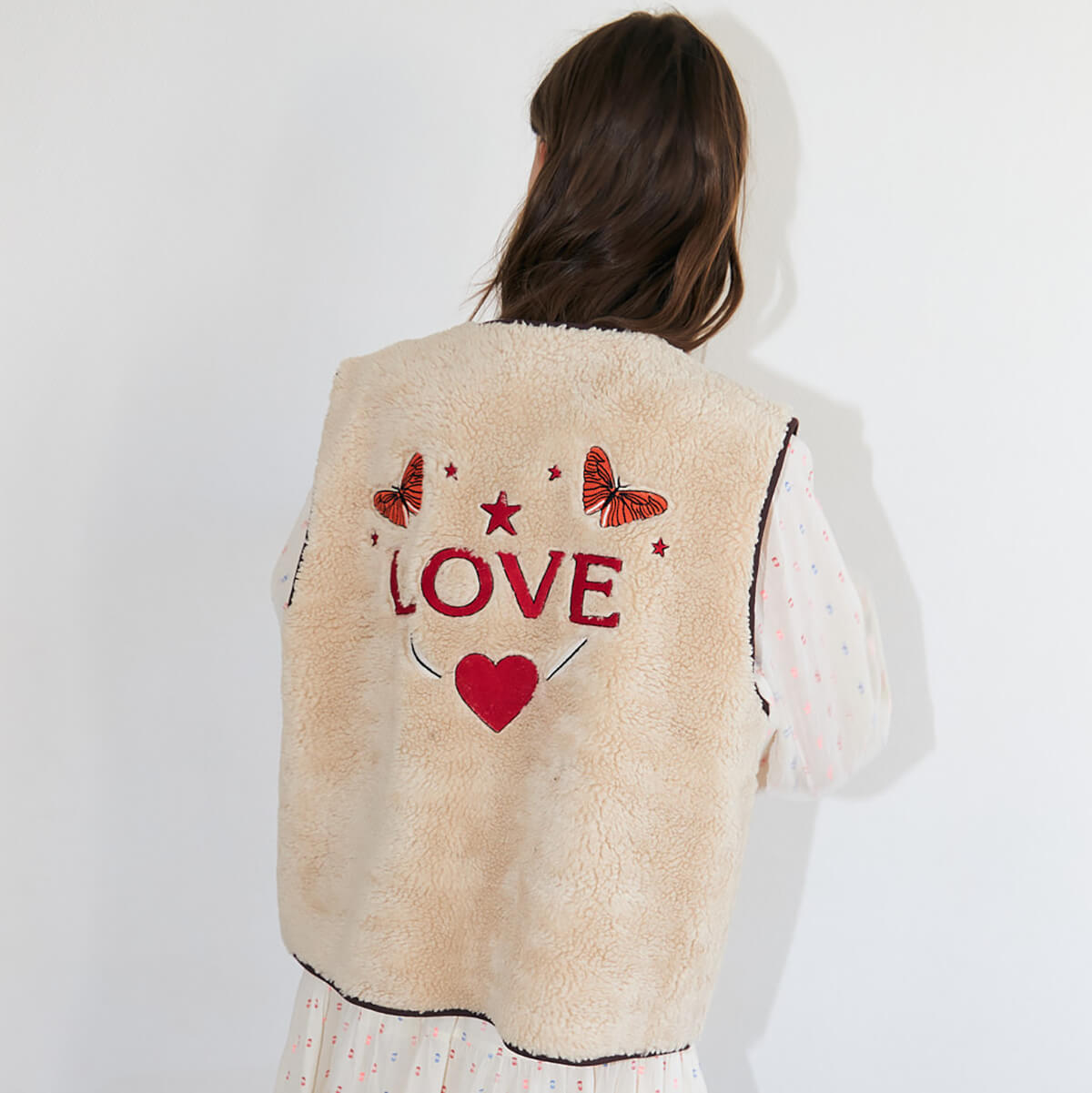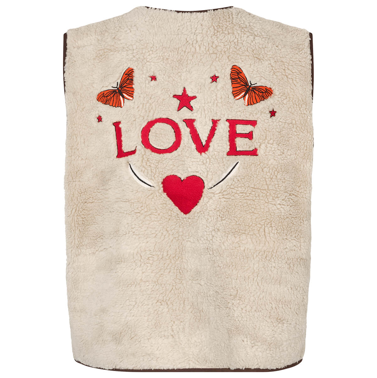 Jace Love Vest by Lollys Laundry. A soft off white teddy vest with a beautiful embroidered print on the back.