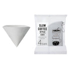 Cotton Paper Filters by Kinto. Cotton pulp and wood pulp coffee filters for pour overs. No chemical adhesive is used for the seam of the filter.