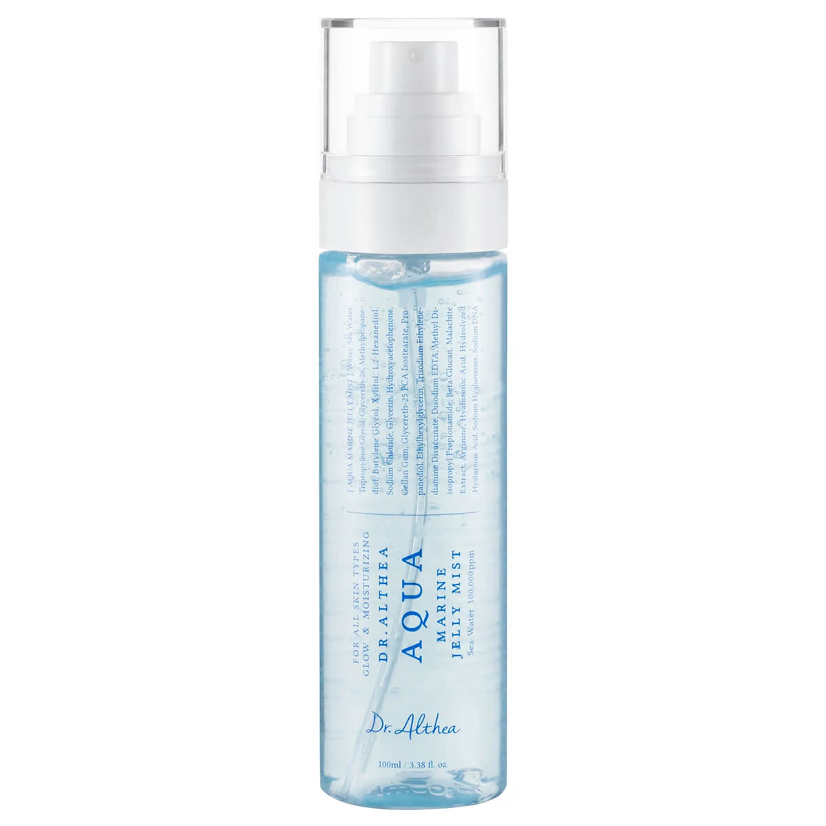 Aqua Marine Jelly Mist by Dr. Althea. A refreshing, moisture-boosting facial mist infused with marine extracts and hydrating jelly components to instantly revitalise and soothe the skin. Its fine, lightweight spray delivers a cooling burst of hydration, leaving the complexion dewy, plump, and comfortably refreshed throughout the day.
