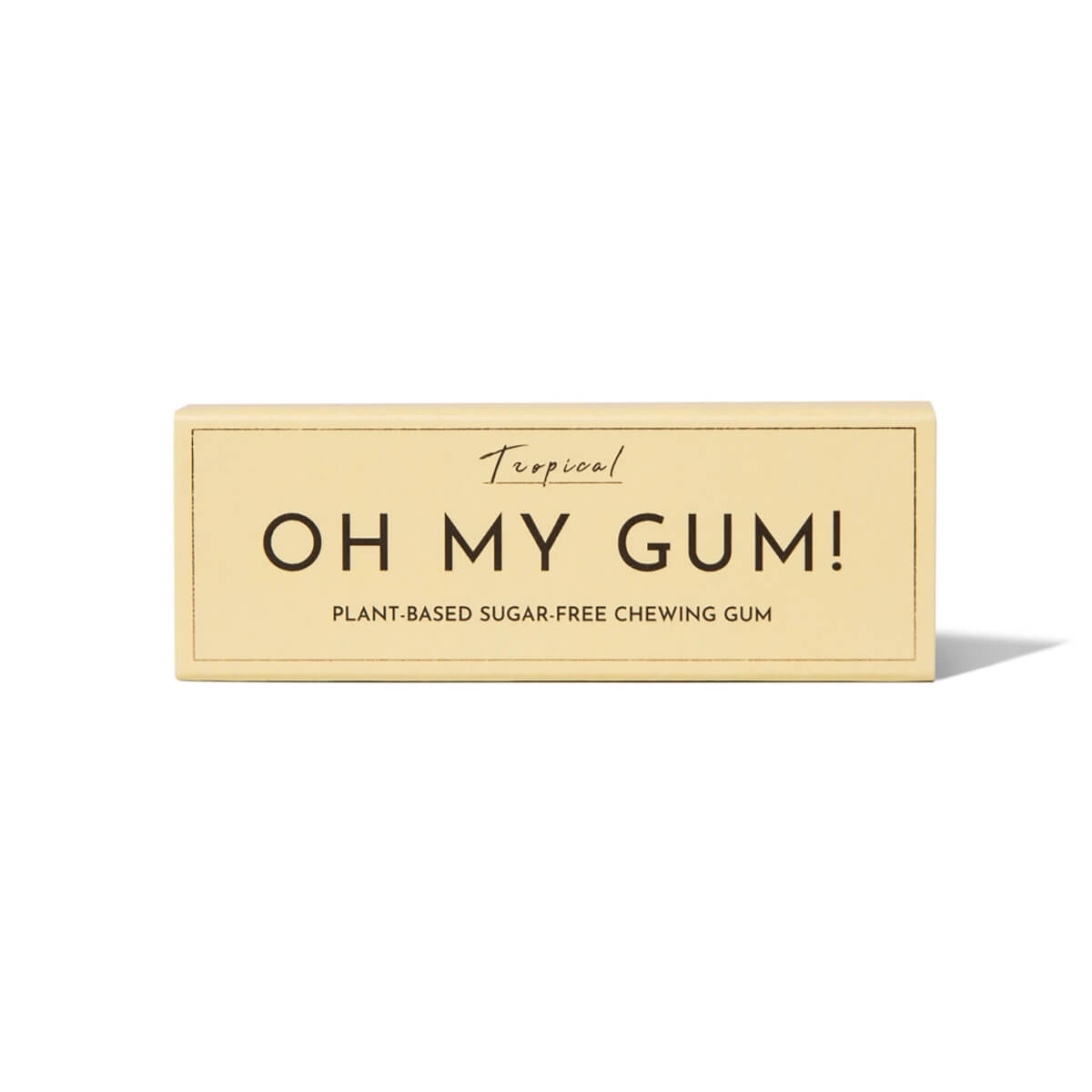 Tropical Chewing Gum by Oh My Gum! Dive into paradise with this tasty, plastic-free, sugarless tropical chewing gum. Made with 100% xylitol, a natural sweetener derived from plants, this refreshing gum offers a burst of juicy tropical fruits with every chew. It is sugarless, GMO-free and is planet-friendly and vegan certified. The packaging is 100% reyclable.