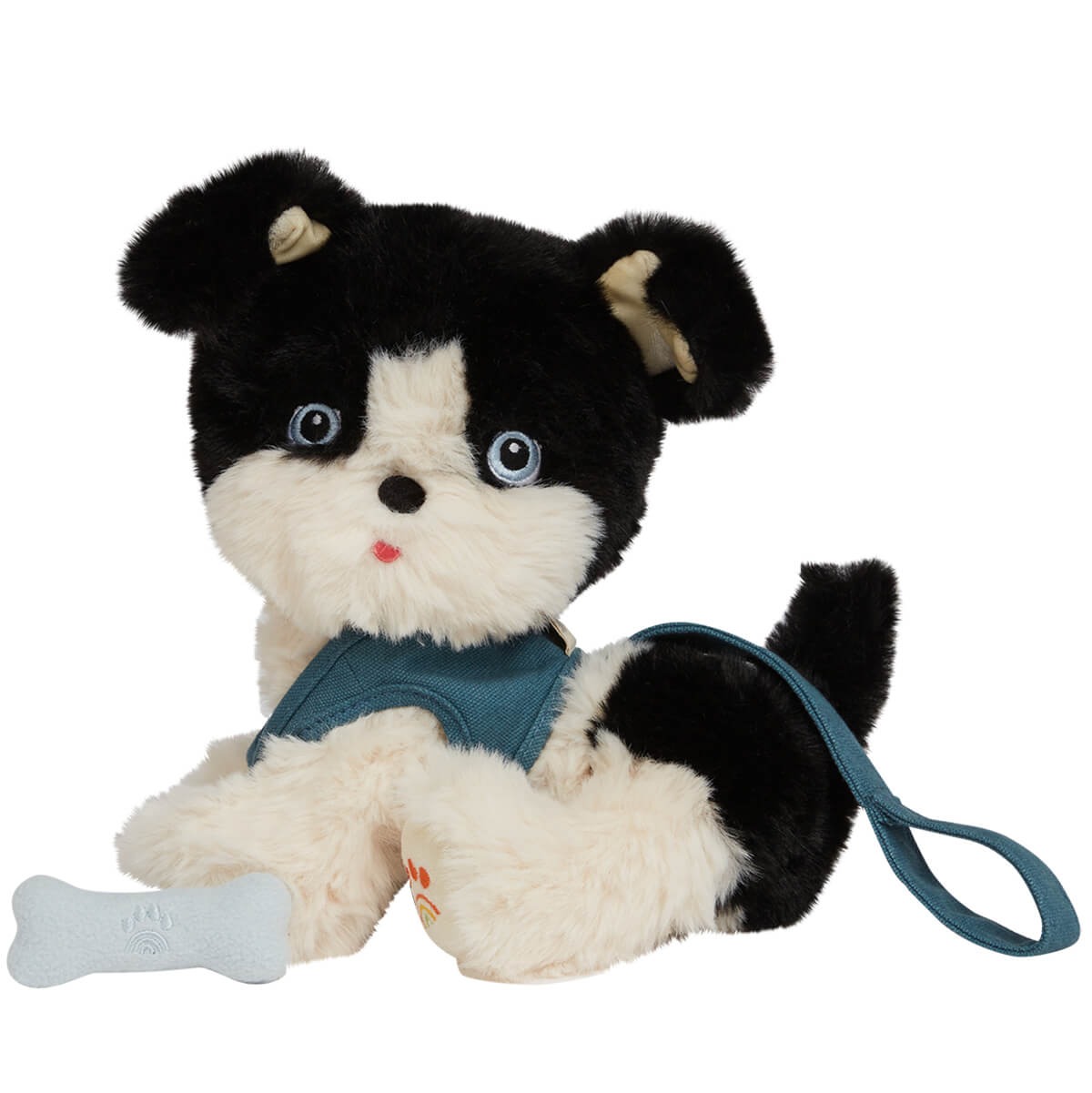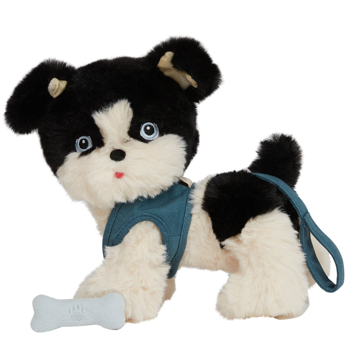 Dinkum Dogs Lucky Doll by Olli Ella. Made from soft recycled plush fabric with velvety ears to snuggle, Lucky is fully poseable and can stand, lay down, and even sit! Lucky's head moves and is embroidered with the sweetest doggy face, plus there's a rainbow surprise on one of Lucky's little paws!