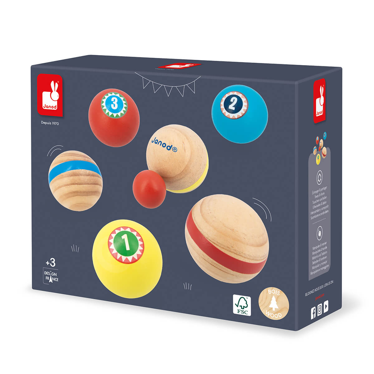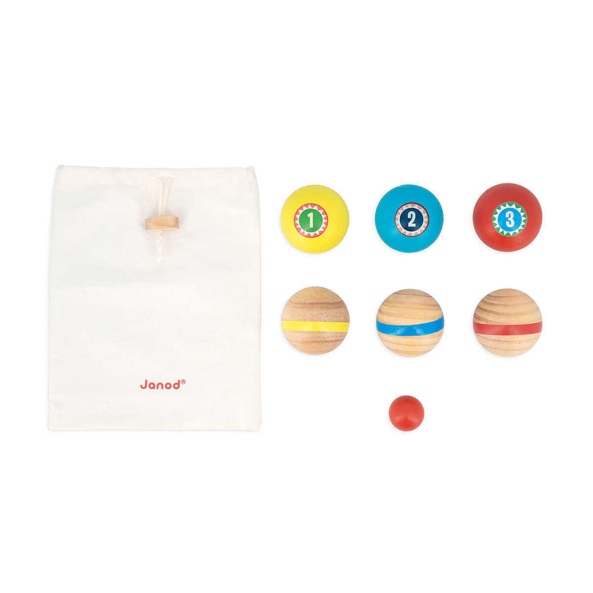 Garden Petanque by Janod. With this wooden boules game, children can engage in friendly competition by transforming their garden or living room into an actual boules pitch. This throwing game is a fun challenge that stimulates the skill and hand-eye coordination of little bowlers, whilst providing many an hour of fun and challenges. This game of skill contains: 6 wooden boule balls, 1 jack and 1 cotton bag to easily transport everything. Take this outdoor game on your next holiday or a trip to the park. 2 or more players.