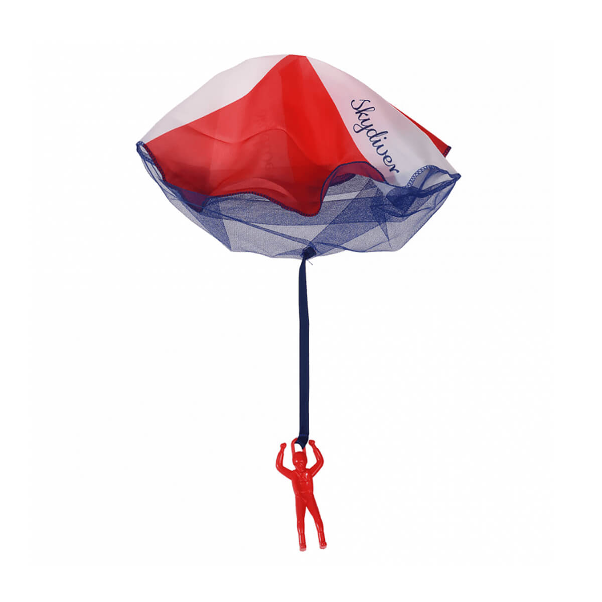 Traditional Skydiver Toy by Rex London. Have hours of fun with this traditional toy! This classic toy skydiver features a non-tangle parachute. Simply throw the skydiver up into the air and watch them float downwards to a safe landing. This classic toy is a perfect filler for party bags and Christmas stockings.