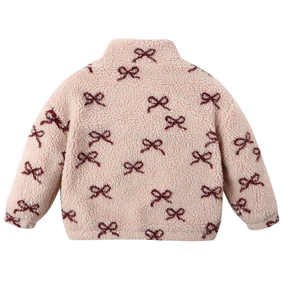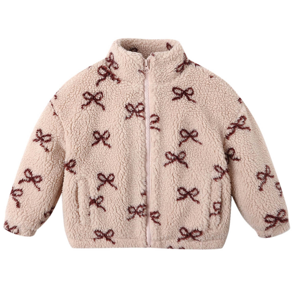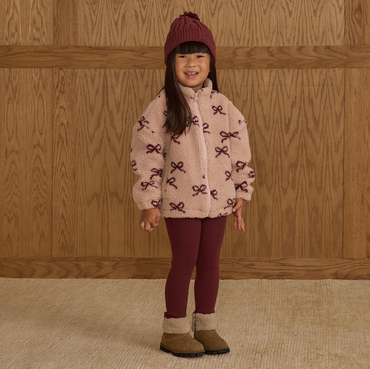 Coco Jacket by Rylee & Cru. Faux shearling jacket features cosy side pockets, a zipper closure, and a fun pattern with a pop of color to brighten up any outfit.