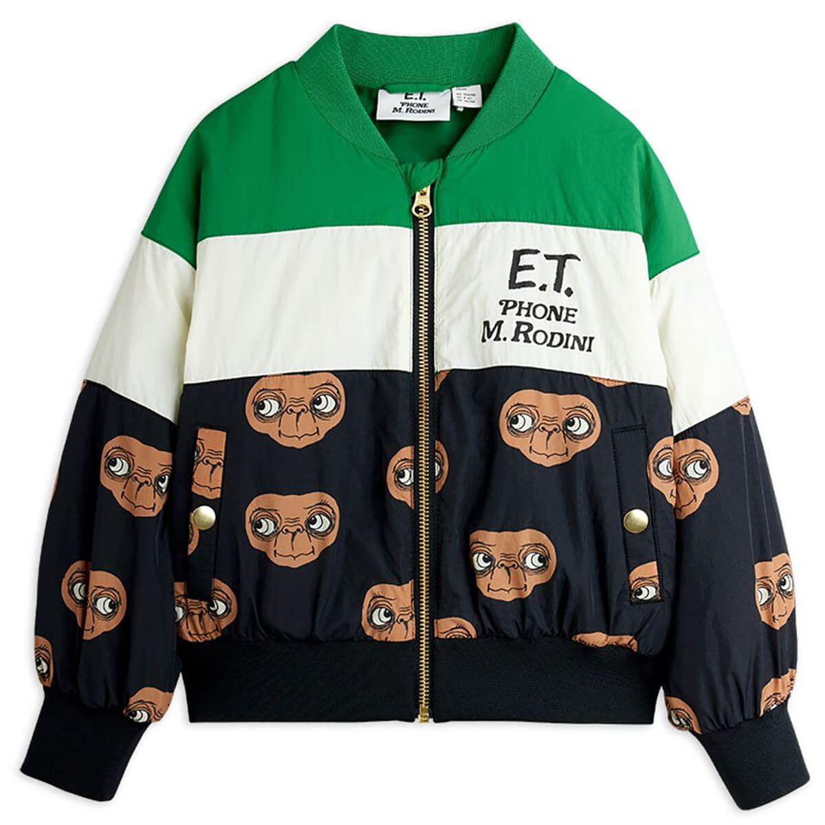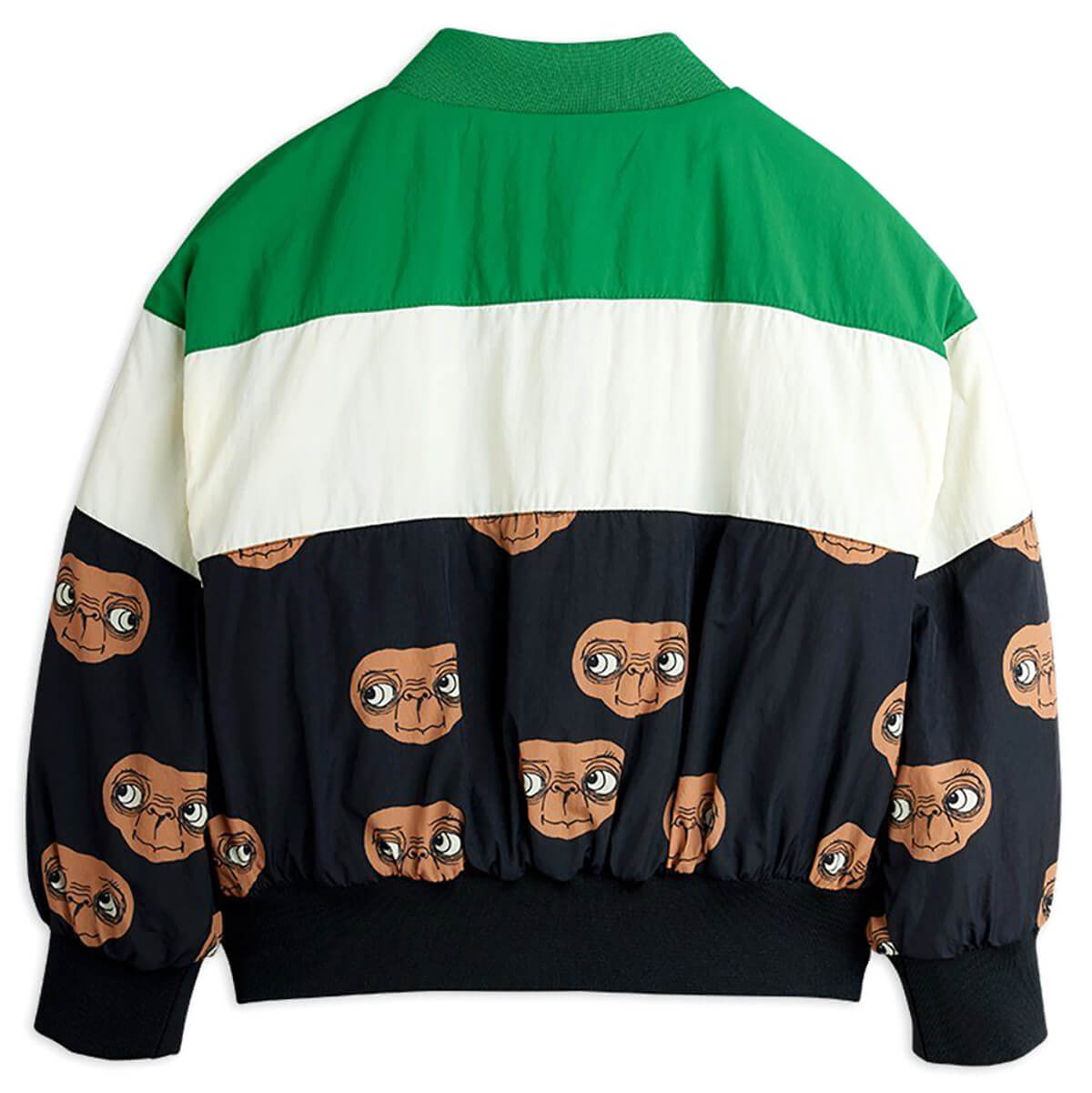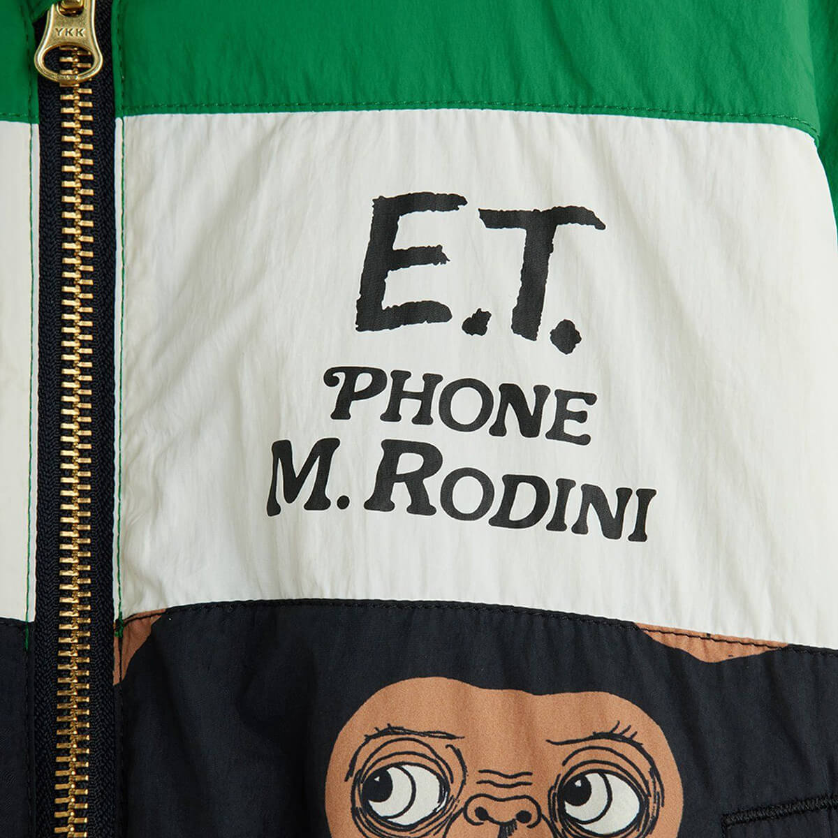 E.T. Baseball Jacket by Mini Rodini. Colour-block baseball jacket made from 100% recycled nylon with E.T. print. Features elasticated cuffs and bottom hem and two front pockets.