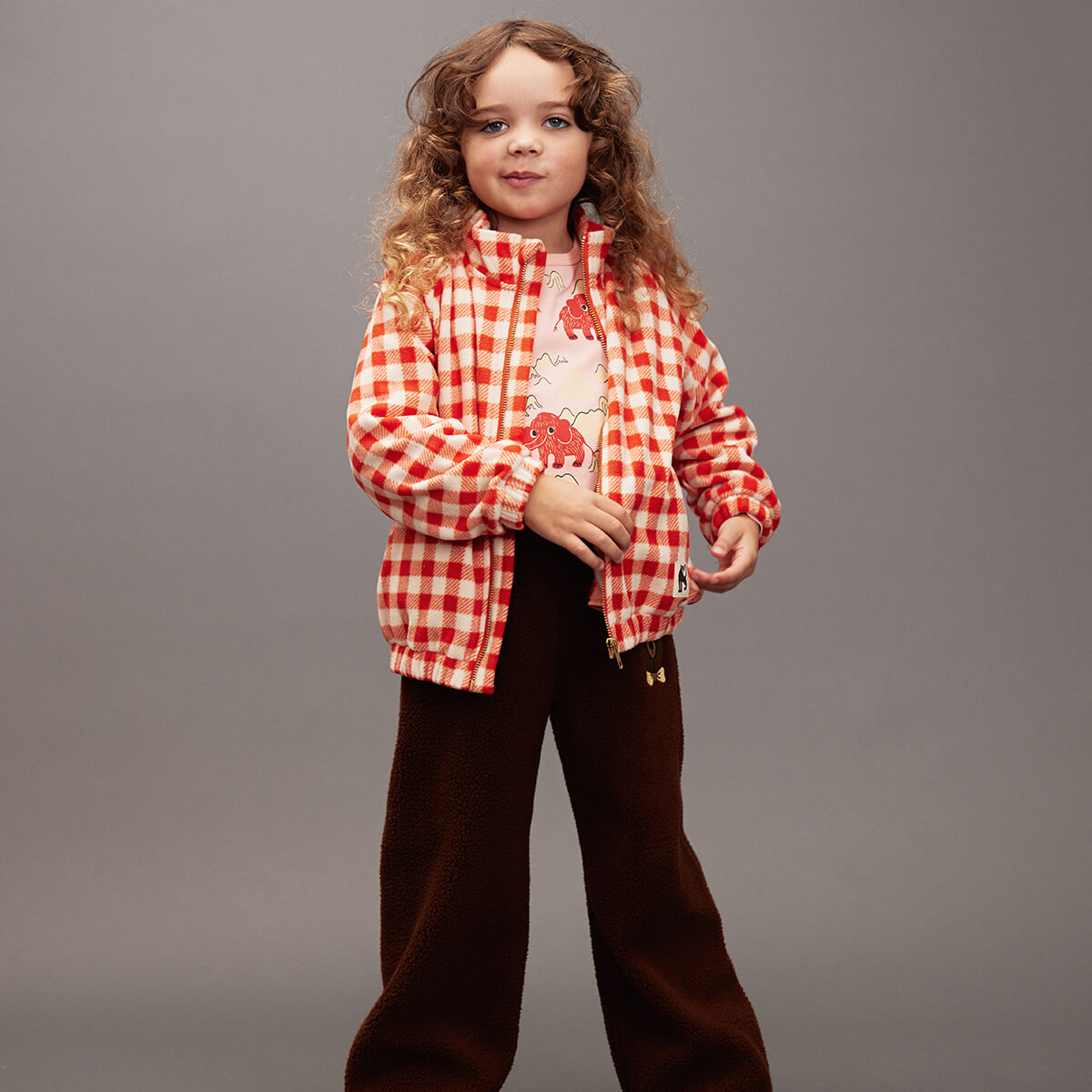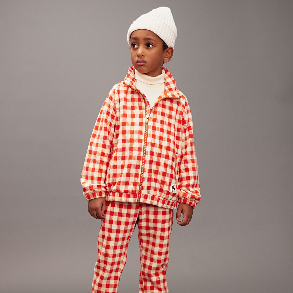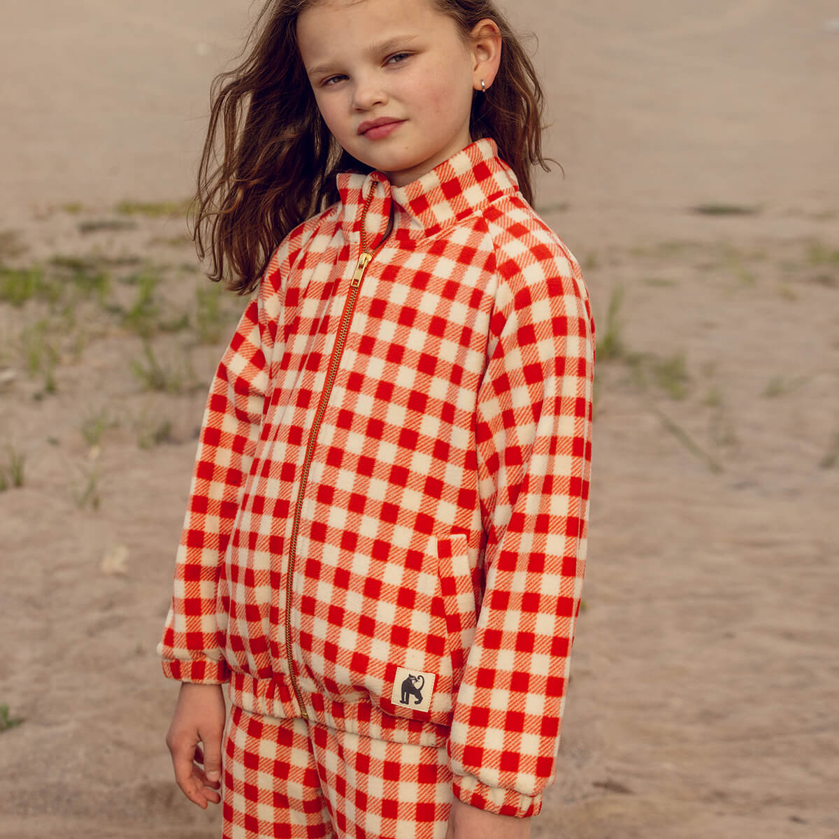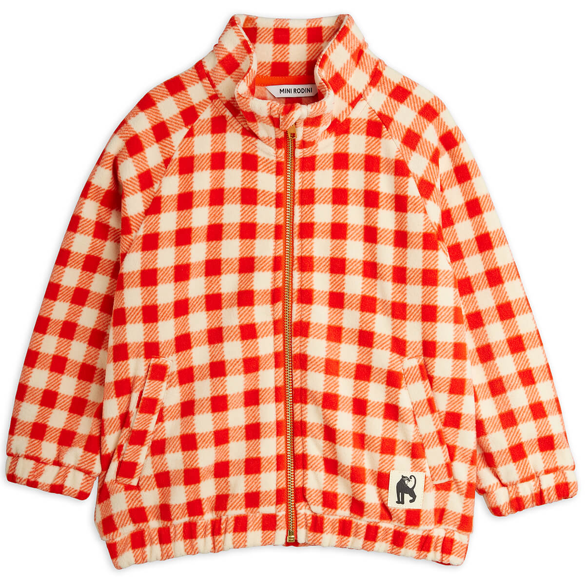Gingham AOP Fleece Jacket by Mini Rodini. Fleece zip-up jacket in a classic red gingham design, featuring elasticated cuffs and pockets.