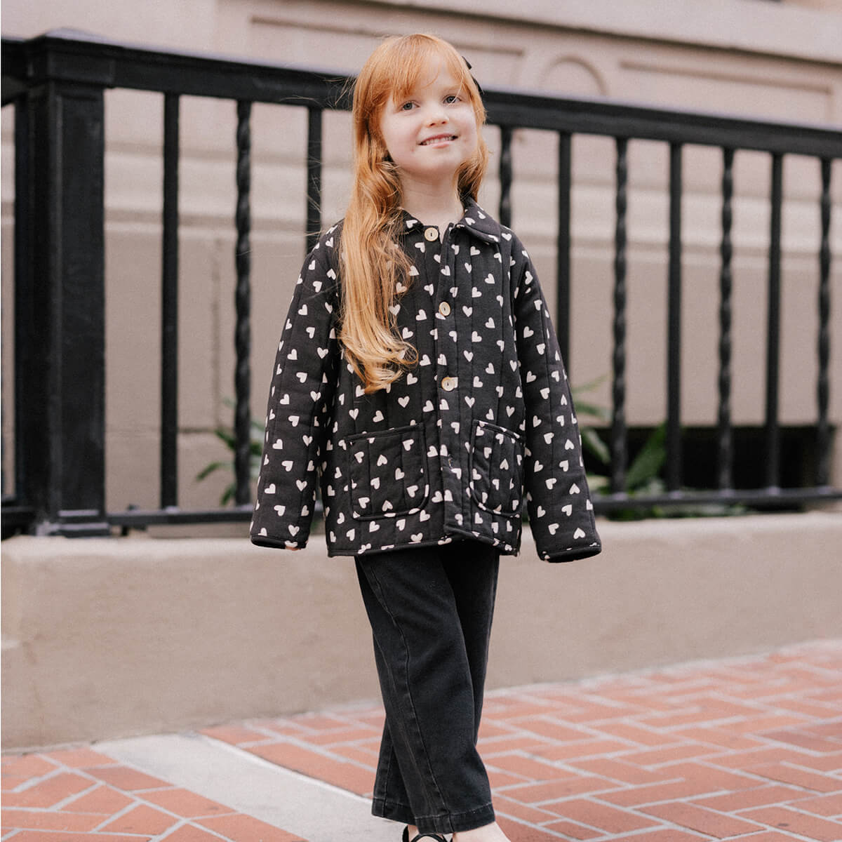 Quilted Coat by Rylee & Cru. This sweet quilted coat is perfect for crisp days, featuring a charming collar and front patch pockets.
