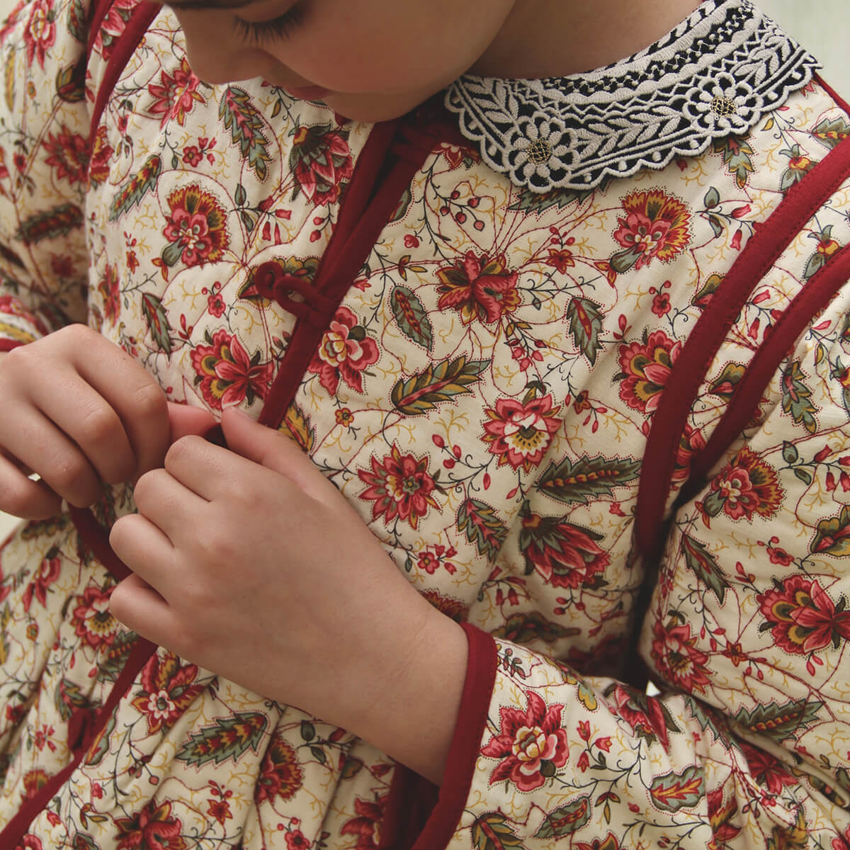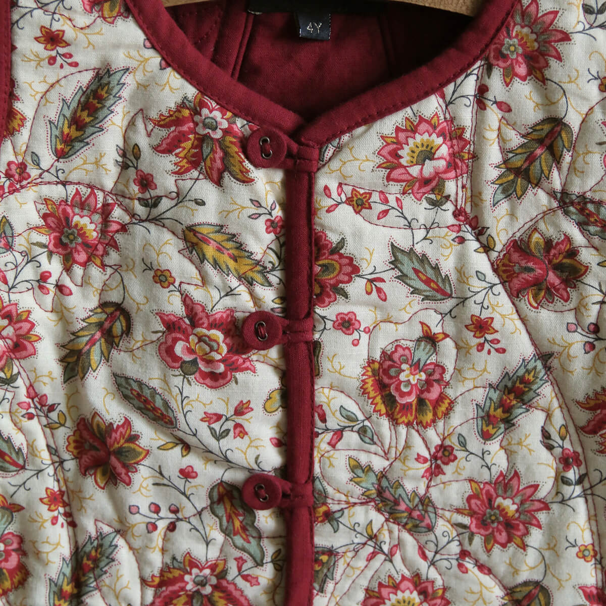 Quilted Jacket by Bonjour. A reversible jacket in seasonal floral and red.
