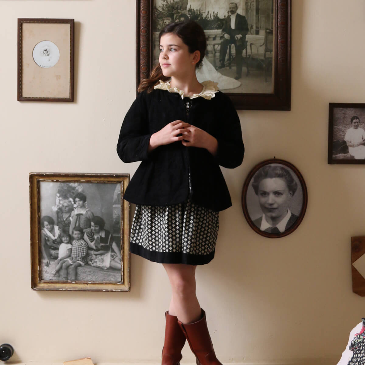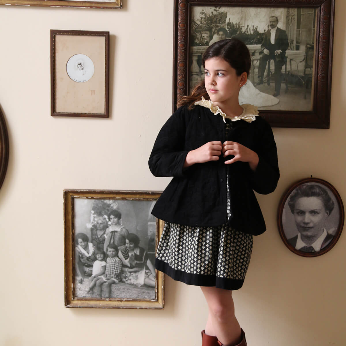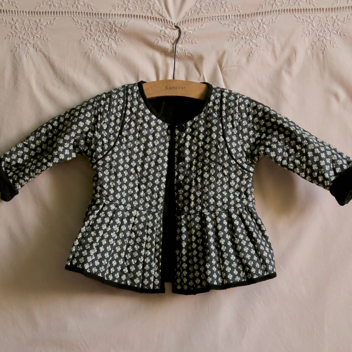 Reversible Quilted Jacket by Bonjour. Reversible jacket in black baby corduroy and provencal print.