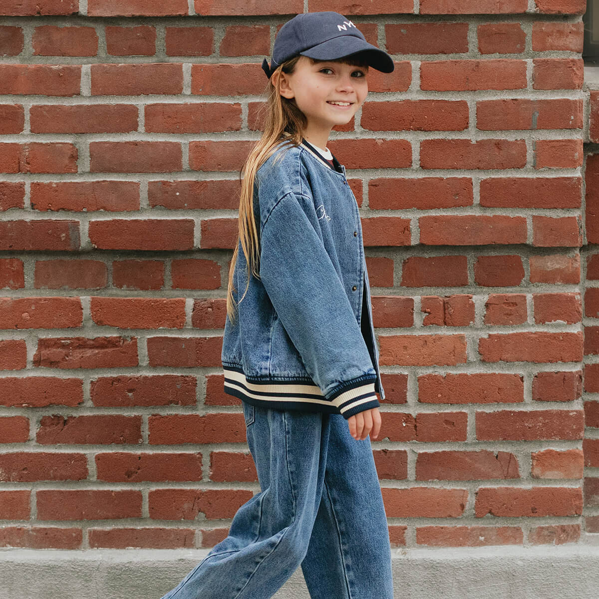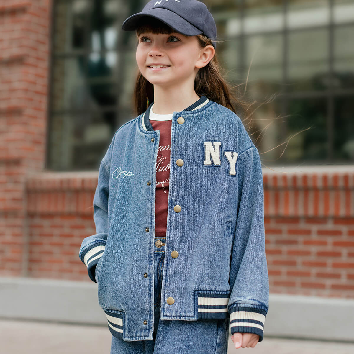 Varsity Jacket in Indigo Denim by Rylee & Cru