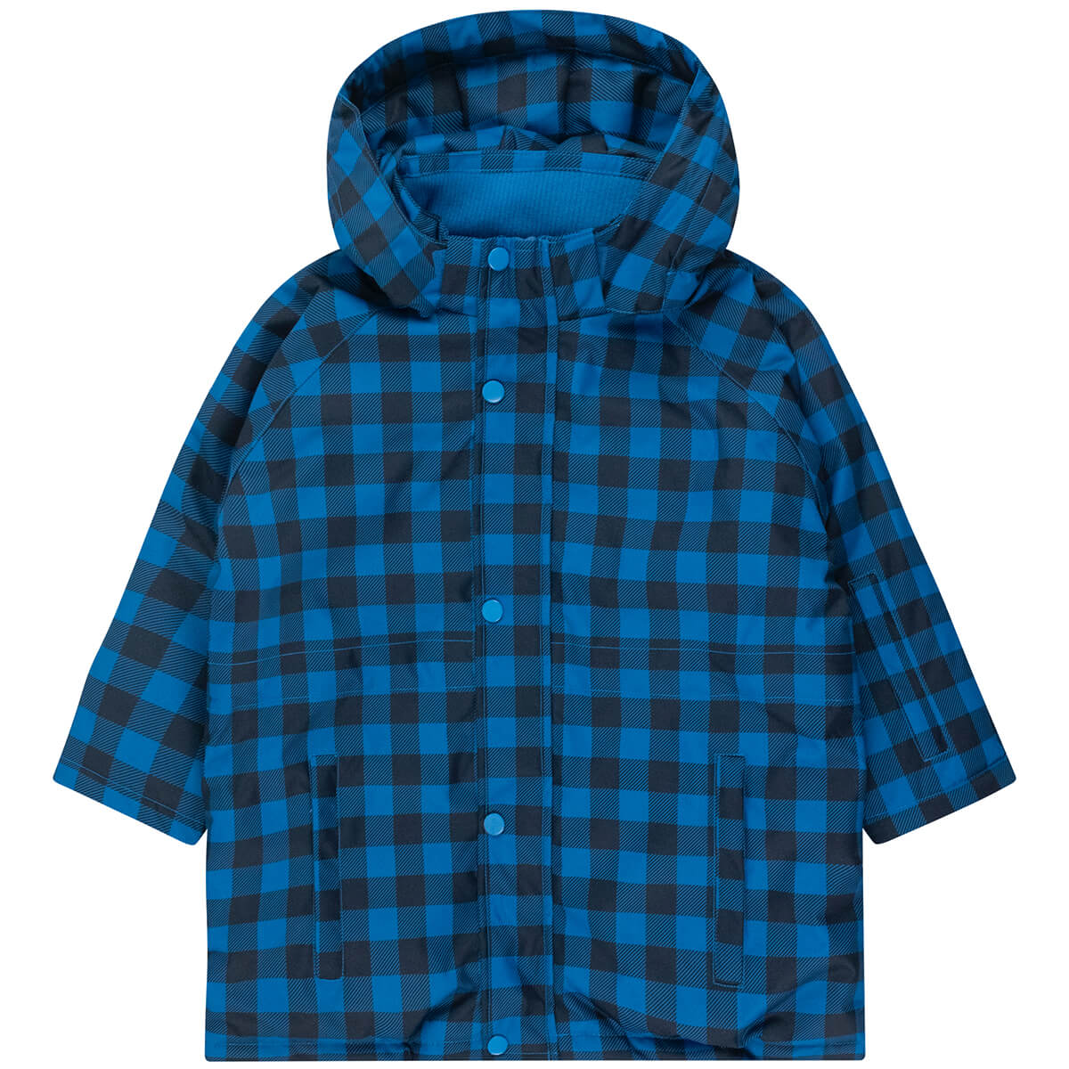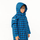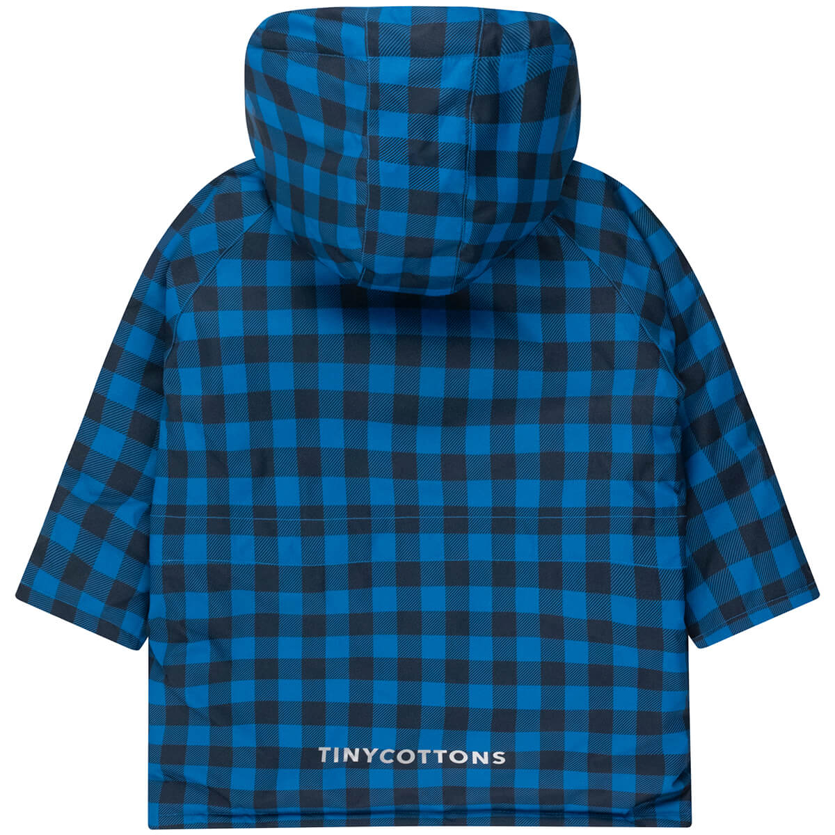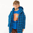 Vichy Snow Jacket by Tinycottons. This blue vichy snow jacket will keep your little ones warm and dry on the ski slopes and beyond. The jacket features a sherpa inner panel and lined pockets for extra warmth, a removable hood, rib cuffs, a full zip with soft fleece zip guard, an inner adjustable waist for the perfect fit and reflective strips on the arms and hood for added safety.