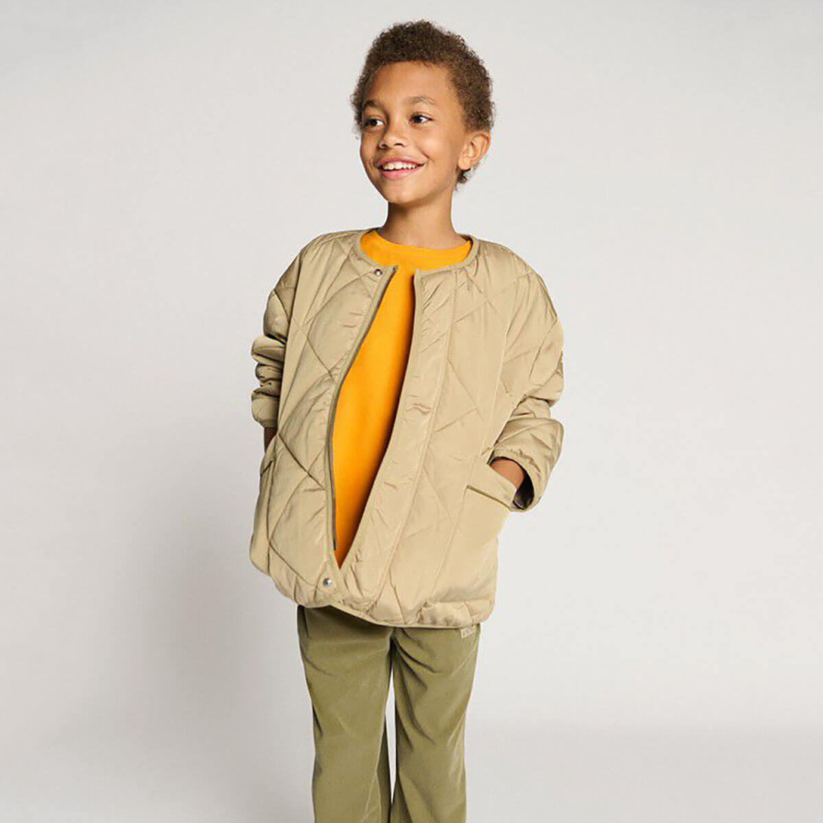 Vowbay kid's jacket by American Vintage. The Vowbay children's jacket stands out for its enveloping volume and lightness, ideal for protection while remaining comfortable for everyday wear. Made from a smooth, soft and matte water-repellent technical fabric, it offers a modern and refined look. Made from recycled fibres, it combines functionality and style. Easy to wear, this jacket goes well with both everyday looks and more sporty outfits, for a practical and contemporary silhouette.