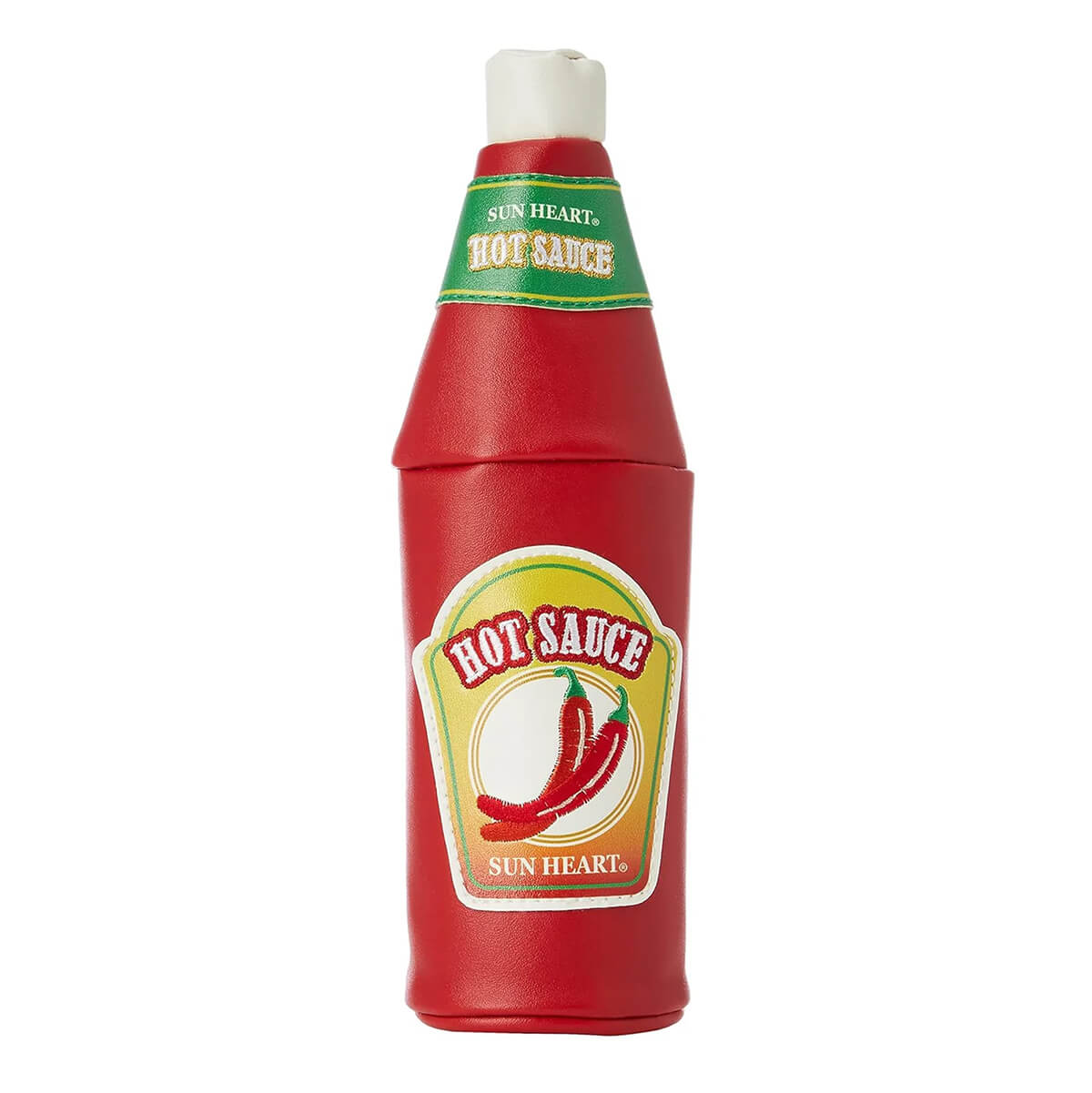 Hot Sauce Pouch by Yup! Introducing a unique series of pouches inspired by food packaging, designed to tantalize your appetite and spark your imagination for their use! These multi-purpose storage pouches are finished with attention to detail and lined inside. Storage pouch with a humorous design inspired by a bottle of hot sauce.